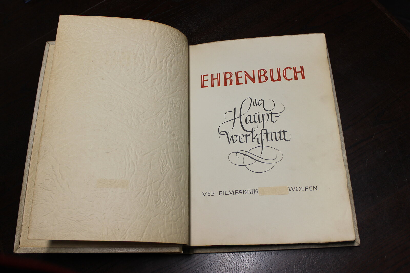 Ehrenbuch der ZW der Filmfabrik Wolfen erste Seite.JPG