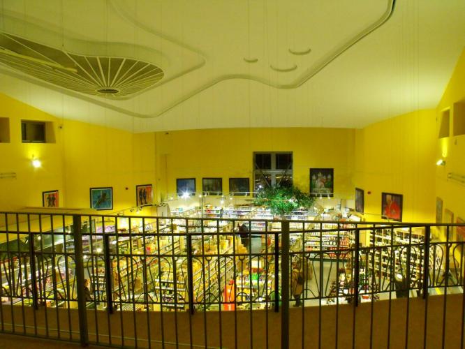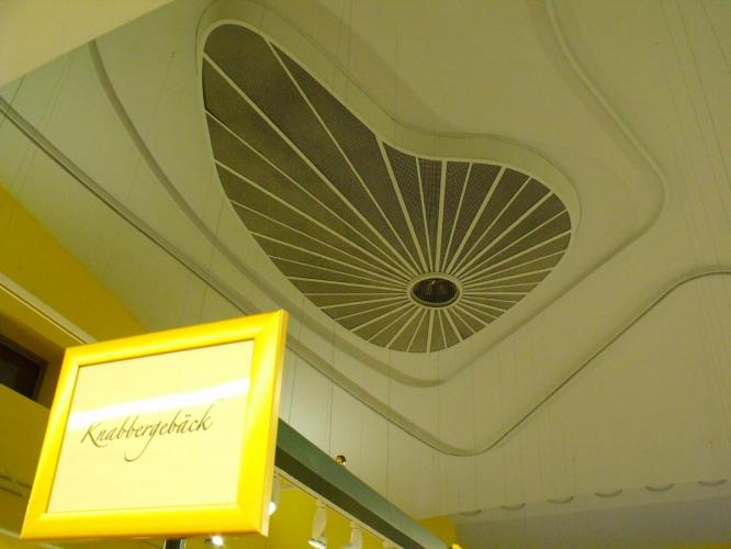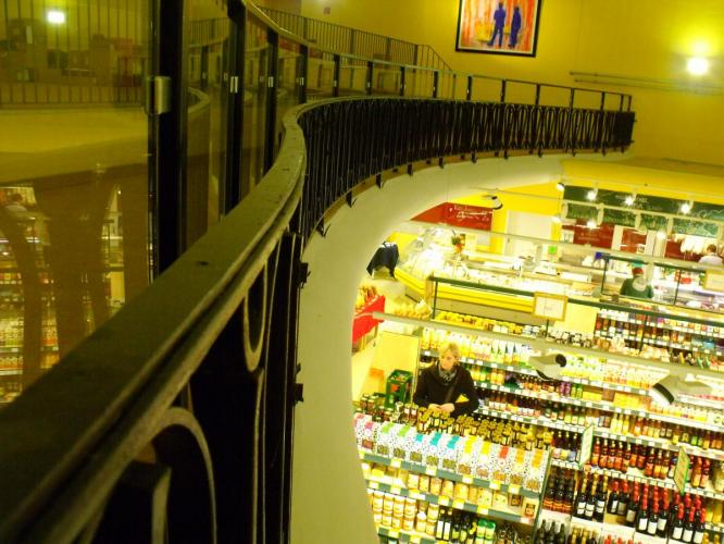 Auch wenn es noch mehr OT wird ;-) Letztes Jahr bin ich auf der Suche nach Essbarem auf dieses Gebäude gestoßen. Auf Nachfrage durfte ich Fotos machen, und freundlicherweise ließ man mich auch auf den Balkon. Das war schon faszinierend, mitten in diesem Laden zu stehen und plötzlich diese Architektur zu entdecken. Ich war ja völlig unbefleckt. Und dann das! Interessant fand - und finde ich immer noch - das Deckenelement, welches je nach Blickwinkel seine Proportionen ändert. Kommt auf den Bildern auch glaub ich ganz gut rüber.1 Punkt