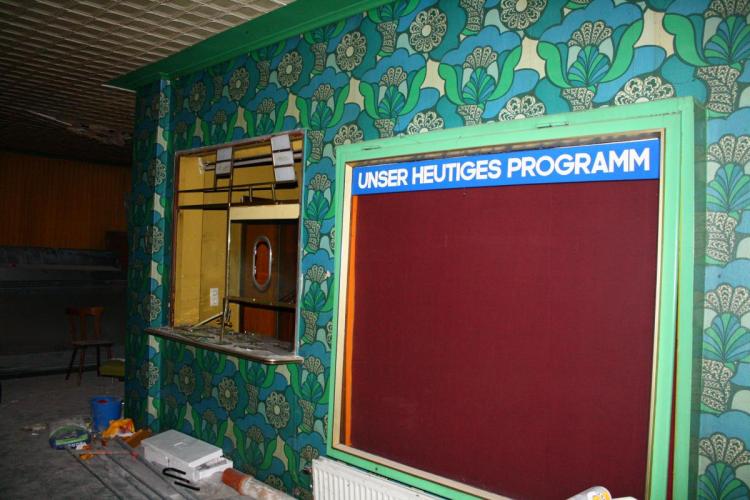 Ich könnte heulen... Habe duch Zufall bei einem Spaziergang einen großen Durchbruch zu einem alten Kino in Bremerhaven gefunden und sofort meine Kamera geholt. Der Saal ist jetzt plan gemacht, damit er als Lager herhalten kann. Das REX war das zweitgrößte Kino in Bremerhaven mit 800 Sitzplätzen. Sei 1989 ist es geschlossen, nachdem es zuletzt nur noch als Pornokino überleben konnte. Aber früher - jeden Sonntag um 14.00 Uhr die Kinder- und Jugendvorstellung, mit Godzilla, Dr. Fu Man Chu oder Jerry Lewis - das vergisst man nie. Man beachte die für das Auge zurückhaltende Gestaltung der Tapete im Foyer - 1975 einfach top. Und da das Kino bis 1957 noch ein Tanzpalast war - hier noch ein Piano, das jahrzehntelang hinter der Leinwand geschlummert hat.2 Punkte