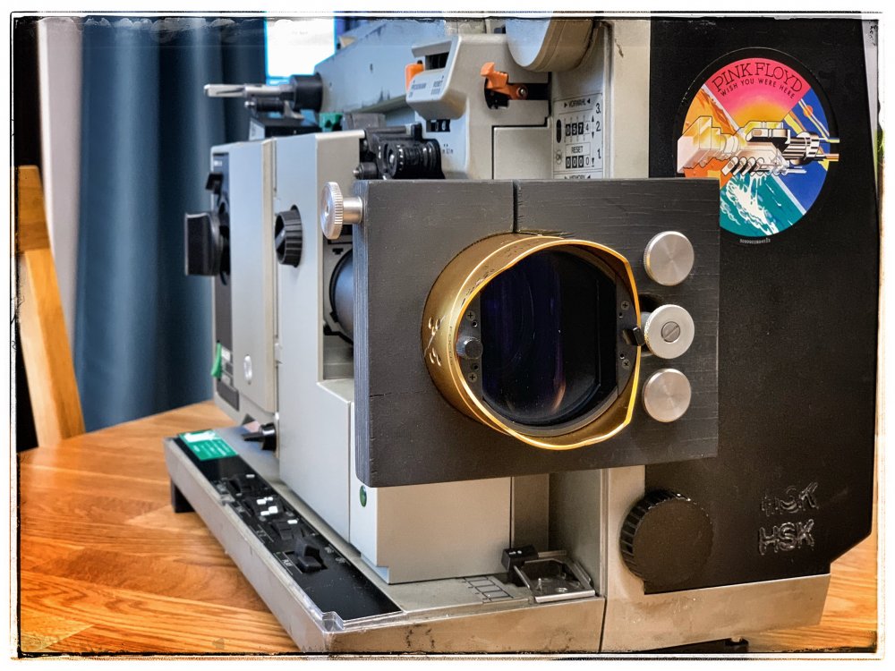 3. Hallo ihr Lieben, vielleicht interessiert es ja jemanden. Habe mir vor Kurzem zwei Anamorphotenhalterungen gebaut. 21mm Multiplex plus diverse Edelstahlrändelschrauben und -muttern. Funktioniert absolut einwandfrei und ist wirklich stabil. Das Loch habe ich mit der Oberfräse plus Fräszirkel gemacht. Eine Halterung für meine Bauer P6-8 Projektoren und eine für den Elmo ST-1200. Auf der Elmo Halterung ist noch ein Filmendeknippser oben befestigt. Für die Bauer Variante habe ich noch die Antriebsachse steckbar verlängert. Viele Grüße, Thomas.