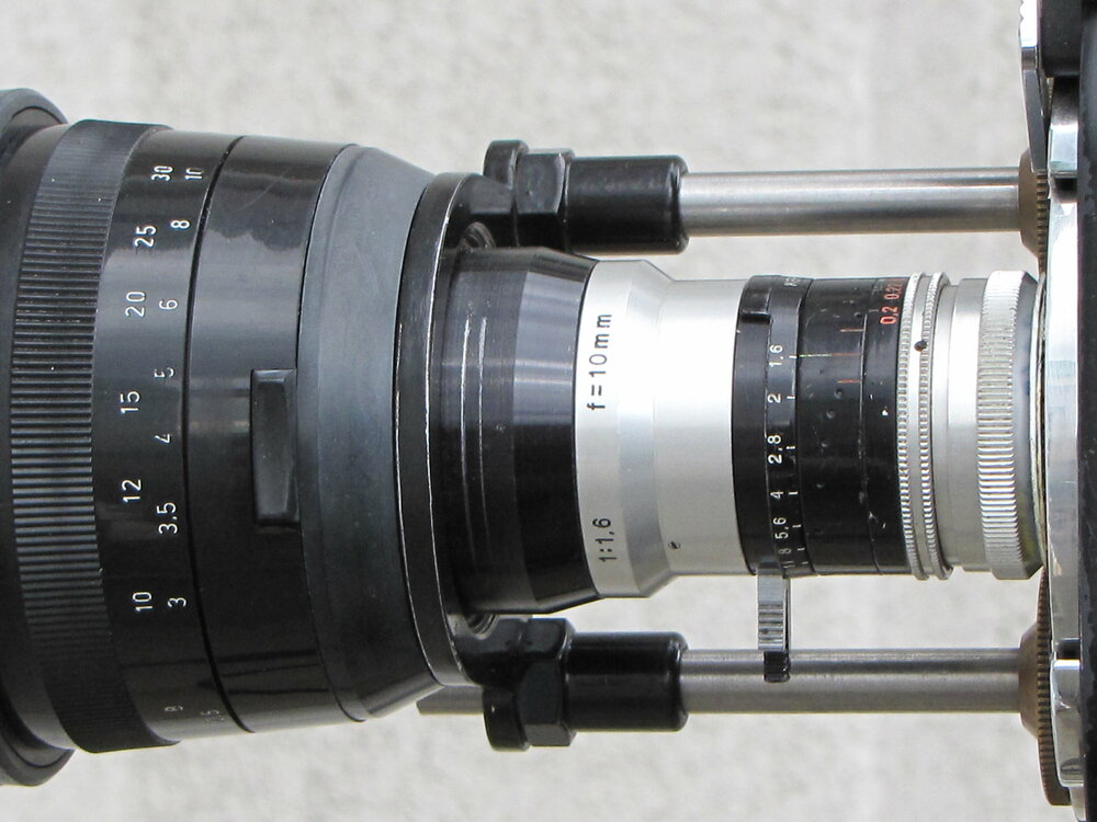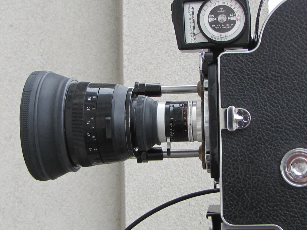 Bernhards Stummfilm wurde mit dem ISCORAMA Anamorphoten 1,5 x 36 gedreht u. in der Malzfabrik mit dem gleichen Anamorphoten u. dem Projektor Elmo GS 1200 Stereo Xenon vorgeführt. Der dazu passende u. zu laute Ton kam von einem CD Player. Von ISCO finde den kleinen 1,5 x 36 am besten. Ritter lieferte unter der Typenbezeichnung Iscorama/Bl. 6008 eine Festbrennweitenkombination bestehend aus einem Schneider-Cinegon 1,3/10 mit Fixfocus und dem Iscorama Vorsatz 1,5 x 36. Für die automatische Belichtung besaß diese Kombination sogar einen Blendenmotor. Sogar für die Kameras der Serien 4008 und 5008 gab es auch so eine Zusammenstellung. Mit diesen Objektiven waren Beaulieu Super 8 Filmer in der Lage recht komfortabel Breitwandfilme zu drehen. Am 1. November 1981 veranstaltete der BDF in Zusammenarbeit mit der damals sehr rührigen Fa. Ritter in Berlin in dem damals noch existierenden Kino ``Astor´´ am Kurfürstendamm eine Sonntagsmatinee, an der Amateure die Möglichkeit hatten ihre Super 8-Filme auf der 8 m breiten Leinwand vorzuführen. Als Super 8 Projektor war ein Beaulieu mit der High-Power-Lamp im Einsatz. Was da von der großen Kino-Leinwand herunterkam war sensationell. Es wurde eindrucksvoll gezeigt was der Super 8-Film zu leisten vermag. Höhepunkt der Matinee war ein von Dieter Ritter mit der Beaulieu 6008 im Iscorama-Verfahren in Super 8 gedrehter Nepal Reisebericht. Nie wieder habe ich etwas Vergleichbares in Super 8 im Kino gesehen. Eine sehr schöne u. gute Kombination gibt es mit dem 1,5er der Leicina Special u. dem Schneider MACRO-CINEGON 1.1,8 10 mm. Durch seine Innenfokussierung hat dieses Objektiv einen starren Vorderring und eignet sehr gut für das ISCORAMA-Breitbildsystem. Diese Kombination wird mit Super 8 meiner Meinung nach nur noch durch das DS-8 getoppt. Elmo GS 1200 Stereo Xenon.pdf1 Punkt