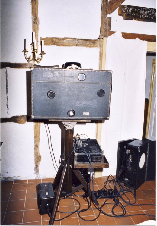 Hallo, tolle Bilder... ich habe mit 16 Jahren ( vor 53 Jahren ) mit der Phonobox auf Kinowanderschaft in Bremen und umzu vorgeführt , dann habe ich sie für zu Hause "verkleinert" in einer geblimmten DEBRIE 35mm Aufnahmecamera eingebaut, somit hatte man keine Störgeräusche, im Unterschrank waren 1800 m Spulen und die Friktion hatte ich von einer ASKANIER-Maschine genommen. Tolle Filme ( von BEN HUR, DOKTOR SCHIWAGO, DIE KLAPPERSCHLANGE usw ) habe ich damit vorgeführt, und die Kopien haben nicht gelitten, keine Schrammen, keine Laufstreifen etc. ich habe auch sehr darauf geachtet... Gruß aus Bremen1 Punkt