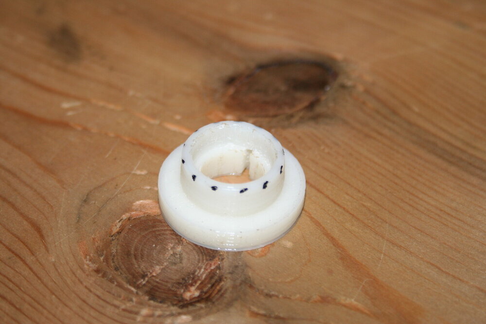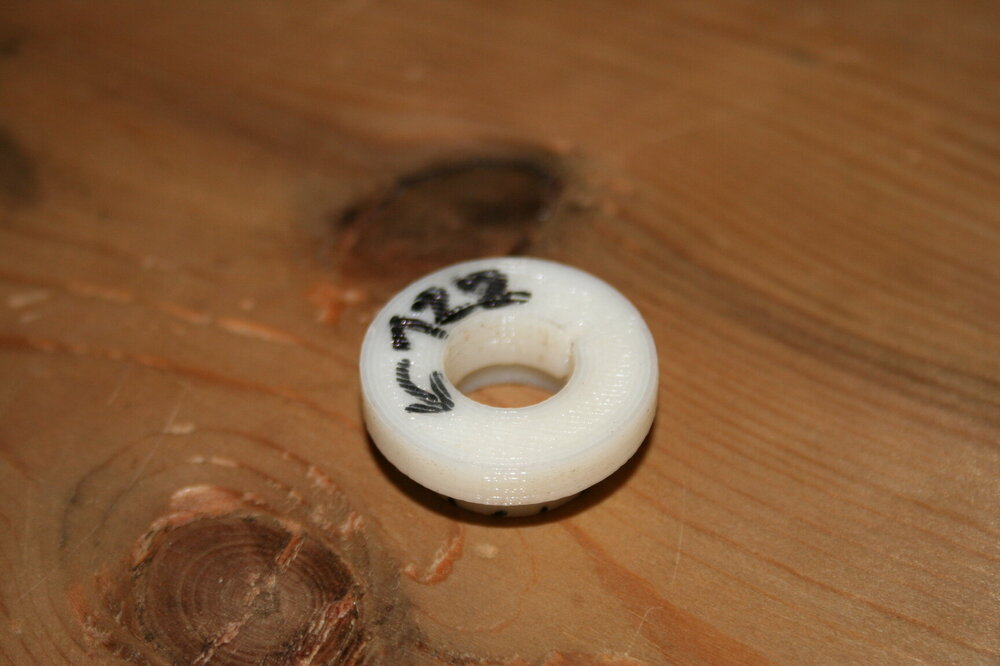 So, dies ist Teil 2 meiner "Bastelstunde", mit dem ich mein Loblied auf 3D-Drucker fortführe. Eigentlich auch nur ein winziges Hilfs-Teil, welches mir aber seit längerem gute Dienste leistet. Hier sei nochmal auf die wunderbare Anleitung von Friedemann zu dem Thema hingewiesen - bei meiner Variante gibt es nur nicht den "Umweg" über den Plastikring/gestutzte S8-Leerspule zum Aufrollen. (Im Baumarkt oder sonstwo hatte ich keinen Ring mit dem entsprechenden Innendurchmesser finden können.) Mein hauptsächliches Super 8 S/W-Material ist 30,5m Foma DS8, den ich splitte und in 4 alte Svema-Kassetten fülle. Von denen habe ich jede Menge, und sie lassen sich relativ sauber "knacken", so kommt man pro 15 Meter-Kassette auf einen Preis von 8,87€. Da ich nicht gerne viele einzelne Gerätschaften für verschiedene Arbeitsschritte habe, mache ich beide Arbeitsschritte auf einem normalen S8-Betrachter: 1. Das Splitten mache ich wie wahrscheinlich die meisten anderen auch: auf die eine Spule vom Betrachter (oder Umroller) kommt die DS8-Rolle, auf die andere zwei verbundene 30m 8mm-Leerspulen (ich umklebe sie an den aufeinanderliegenden Kanten mit Klebeband, da der Spulendorn nicht bis in die hintere Spule reicht), dazwischen der russische Filmsplitter, und dann wird geleiert. Die eine Rolle muß natürlich nochmal umgerollt werden, damit die Perforation zum Befüllen auf der richtigen Seite liegt. 2. Zum Befüllen habe ich mir ein Plastikteil gedruckt, das genau in die untere Aussparung der Spule aus der Svema-Kassette passt, und genau auf den Dorn meines Betrachters. Das Teil hat gerade genug Friktion, um nicht zu rutschen, und wenig genug, um ohne Gezerre im Dunkeln wieder abgezogen zu werden. So kann ich die Spule direkt auf den Betrachter stecken, bewickeln, und ab in die Kassette damit: Die "122" auf der Unterseite ist eine Erinnerung, daß nach genau 122 Umdrehungen gegen den Uhrzeigersinn 15,25 Meter auf der Spule sind (ich habe ja 30,5 Meter Ausgangsmaterial). Ob der Adapter auch in die Spulen von anderen Kassetten passt, kann ich leider nicht sagen, da ich keine anderen zur Hand habe. Der Dorn meines Umrollers hat auch nur einen Mitnehmer (statt drei), daher ist in meinem Adapter auch nur ein Schlitz. Obwohl er dadurch potenziell nicht ganz universell ist, hier trotzdem die 3D-Datei zum Drucken, falls jemand anderes das probieren will: S8_umrollhilfe_svema.stl Und auch hier gilt wieder: je nach Plastik-Typ Schrumpfungsfaktor beachten und 2-5% größer drucken, damit es nachher passt.1 Punkt