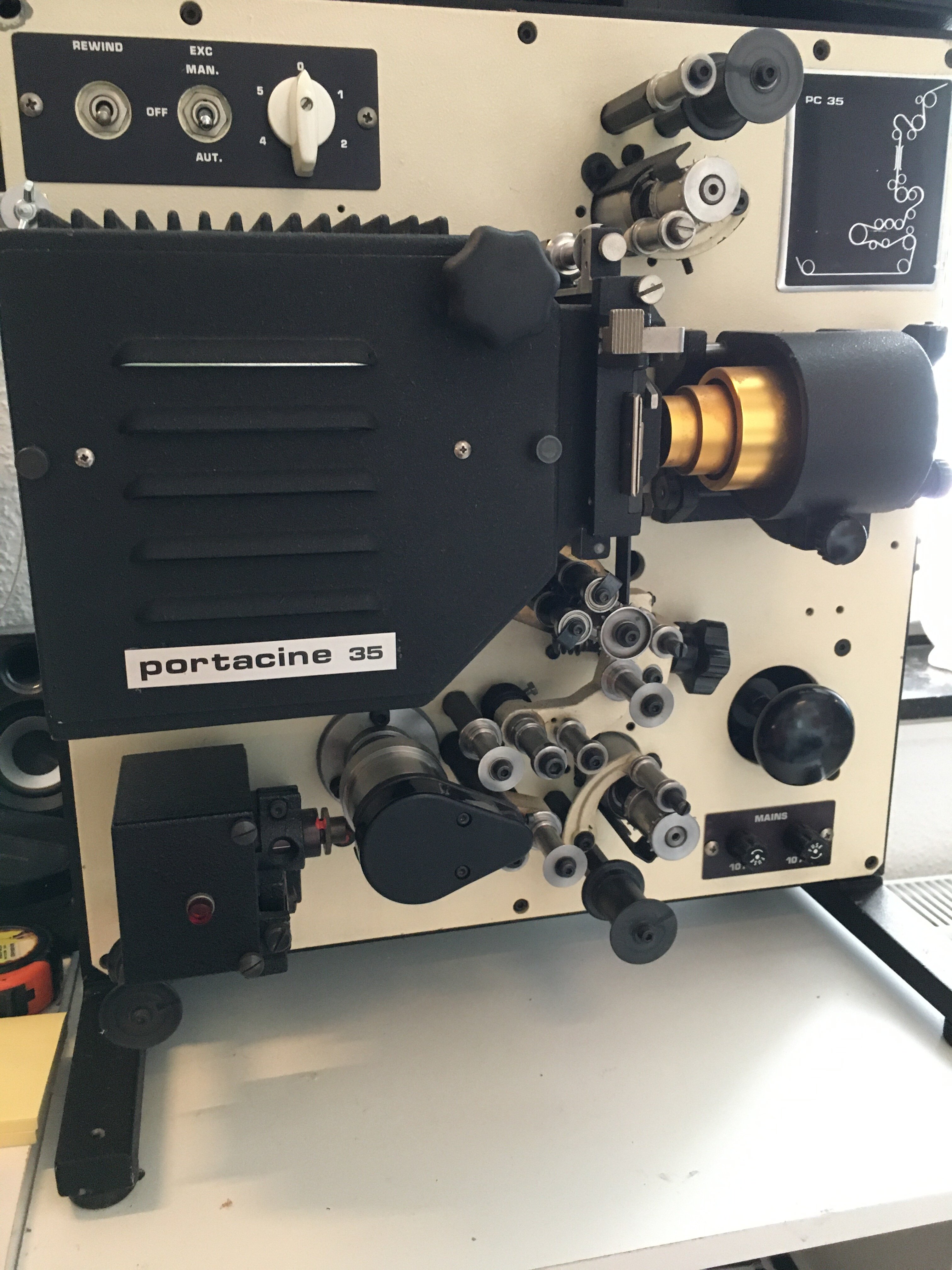 Verkaufe die Portacine mit 1800m Spulen, 2 eingebaute Verstärker, einen für die Innenlautsprecher, den anderen für ext. Lautsprecher 100 Watt, regelbares Netzteil für wenig Spannung ca 8 Volt zum Filmeinlegen ( drehbar am Lampenhaus) und Powerlicht 36 Volt für die Projektion. Nur Abholung in Bremen. Festpreis 2500,€ . Film: TARAS BULBA ( 8 Akte ) guter Zustand, könnte dazukommen. Gruß phonobox 353 Punkte