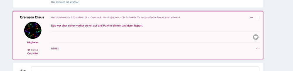 Sehr geehrter Admin, sehr geehrte Moderatoren, seid ihr nicht bedacht, ein konstruktives Forum zu moderieren? Es kann doch nicht sein, das ein gewisser User zu fast jedem Beitrag Unwahrheiten oder unüberlegte dumme Kommentare hinerlässt. Es nervt und macht viele Beiträge kaputt. Ja, man kann ihn ignorieren, was aber rein gar nichts nutzt, wenn seine Kommentare zitiert werden. Denn dann sieht man sie wieder. Dieser User wurde in der Vergangenheit ja schon des Öfteren unter anderen Namen des Forums verwiesen. Dies kam ja damals schon nicht von ungefähr. Wieso hat er nun hier Narrenfreiheit? Bin ich wirklich der Einzige den es nervt?10 Punkte