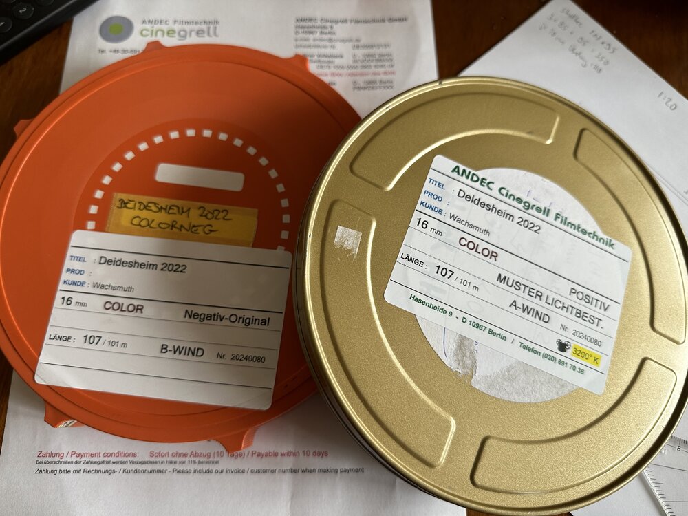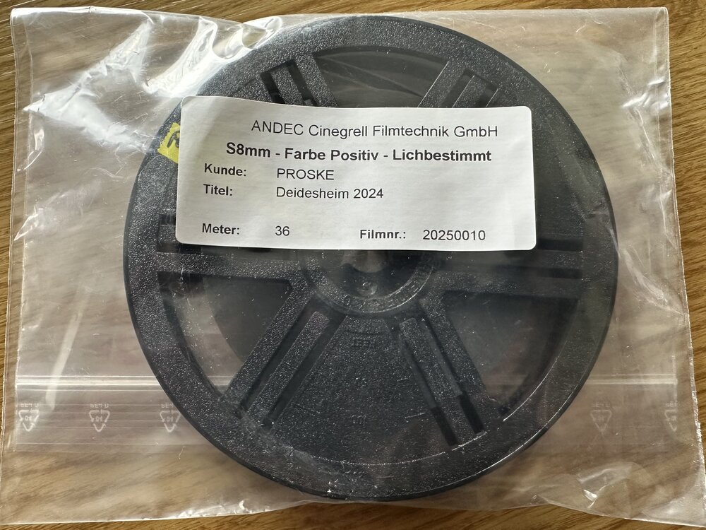 Ich habe diese Woche die mit meinem neu erworbenen Filmo 70-DR in Deidesheim belichteten zwei Filme (Ektachrome 7294) zurückbekommen. Der Bildstand und die Farben sind sehr gut und ich habe fast alles mit einem TTH Cooke Ivotal 50mm gefilmt. Nur am Schluss benutzte ich für zwei Szenen noch das Kern Switar 16mm. Nach ca. 80 Feet durchgezogenem Film klemmte bei der 2. Spule aus irgendeinem Grund der Mechanismus und der Druck auf den Auslöser ging sozusagen ins Leere. Im Museum habe ich dann die Kamera im Wechselsack aufgemacht, die Andruckplatte gelöst und vorsichtig im Filmkanal am Film gezogen. Es machte „Klack“ und der Auslöser ließ sich wieder normal betätigen. Zuhause habe ich einen Probefilm durchlaufen lassen und das Problem tauchte nicht mehr auf. Staub, Ablagerungen oder klemmender Auslöser? Auch die Perforation ist an dieser Stelle des Films völlig in Ordnung. Wer weiß… Insgesamt ist hinsichtlich Schärfe und Belichtung fast alles sehr gut gelungen. Nur bei drei kurzen Szenen auf der Börse am Samstag habe ich leider den Fokus nicht richtig erwischt, sie dann aber aus Erinnerungsgründen nicht herausgeschnitten. Die Filme sind aufgrund unseres Nachwuchses sowieso schon recht monothematisch😉 Die Szenen im gedämpften Licht der Deidesheimer Stuben sind dagegen scharf und überraschenderweise nicht zu dunkel. Ich habe beide Filme mit 24 fps aufgenommen. Beide Filme sind nun auf einer 60-Meter Spule zusammengefasst und wurden gestern Abend von uns zum ersten Mal mit meinem auf der Börse erworbenen Bauer P7 geschaut. 5:30min selbstgedrehter Filmspaß auf 16mm😃11 Punkte