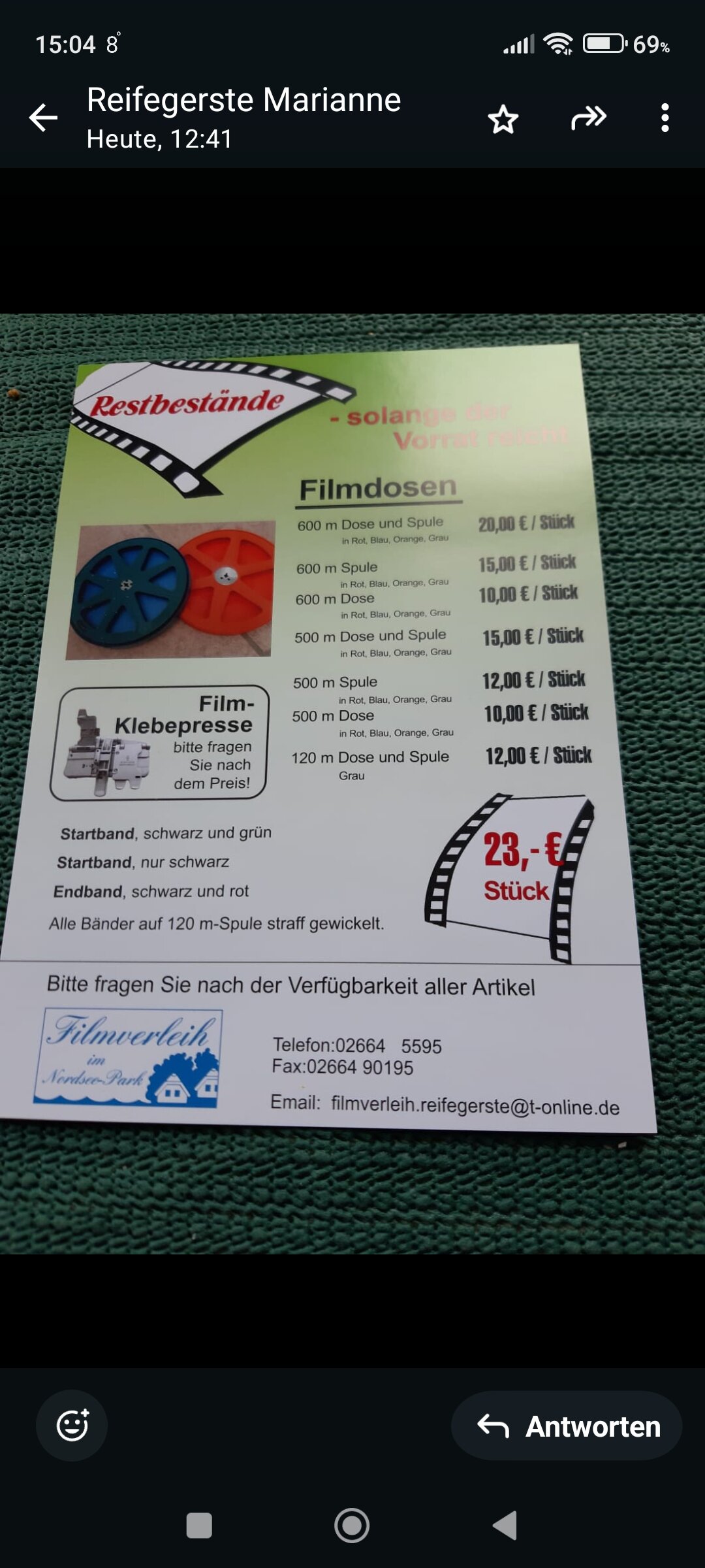 Deutsche Technicolor-Kopie in gutem Zustand. Leider mit angehendem Essigsyndrom. 6 Akte in Aktkartons. Abzugeben für 100 Euro inkl. Versand1 Punkt