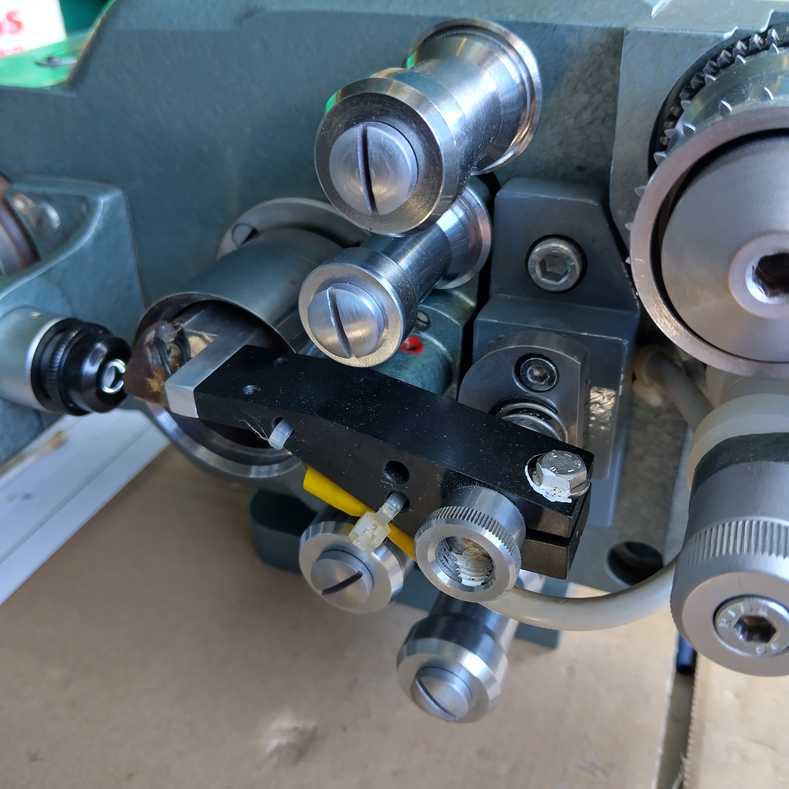 Ganz einfach: der Andruckschuh der VWR/NWR ist aus Kunststoff, daher nicht leitend. Man nehme ein beliebiges Universalmeßgerät, schalte auf Widerstandsmessung oder Durchgangspiepser, ein Pol auf das Gehäuse, ein Pol auf die Stoppschraube. Zwei Lagen Film in die Rolle einlegen, Stoppschraube soweit herausdrehen, daß der Schuh komplett anliegt, dann langsam solange reindrehen, bis Durchgang vorhanden ist. Voilà! (Ich hab auch Bauklötze gestaunt, als ich Tonka das erste Mal dabei über die Schulter blicken durfte...lang ists her!) ...alte Schule halt... :-)1 Punkt