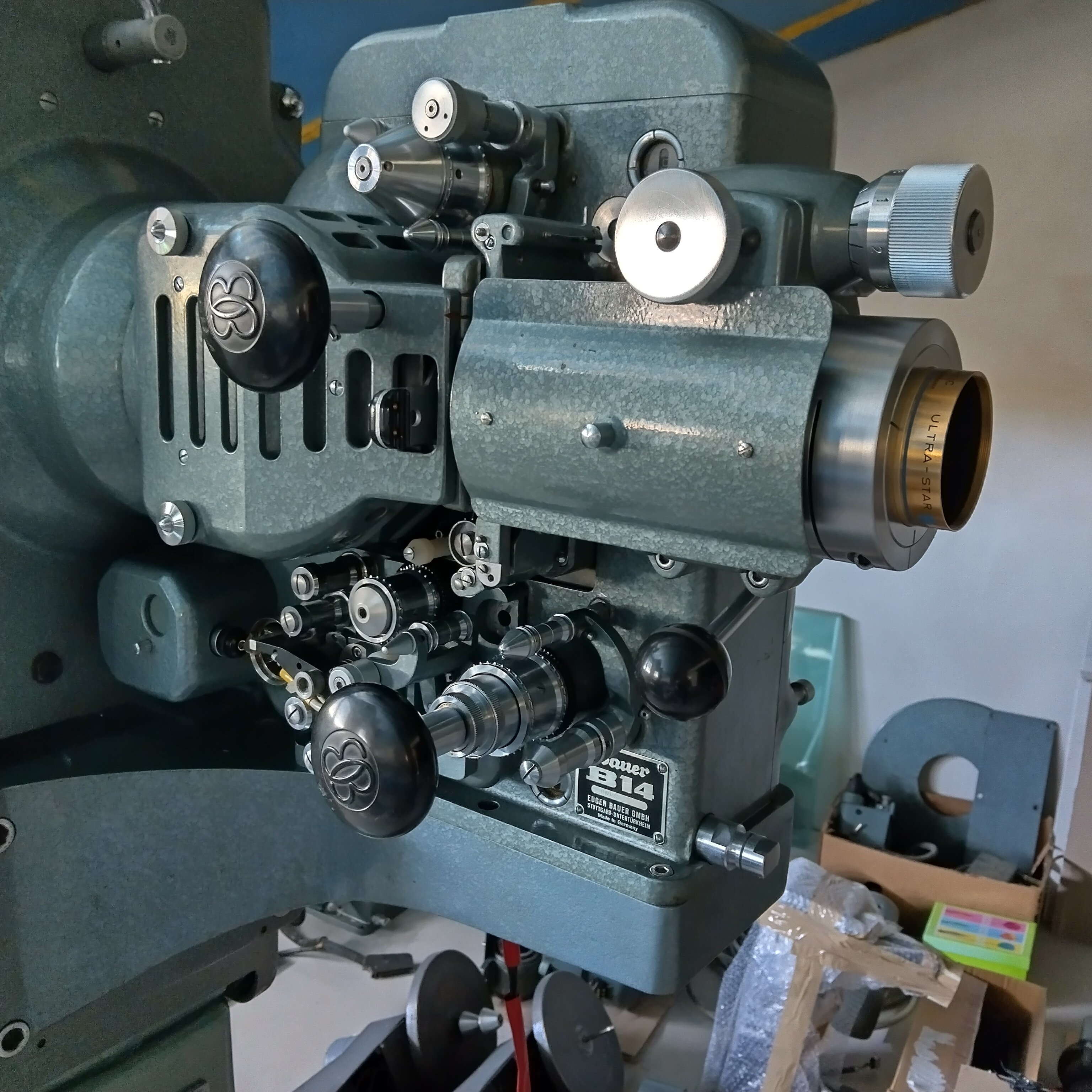 Hallo zusammen meine Lieben! Wir verschenken eine vollständige und sofort betriebsbereite Stumpf 16 mm Standmaschine mit 1600 W Xenon inklusive elektronisch gekoppeltem 16 mm Zweibandlaufwerk (Zweibandlaufwerk ist so groß wie ein Bauer P7). Die Maschine faßt problemlos 1500 m Spulen und hat eine gewichtsabhängige Aufwickelfriktion. Licht- und Magnettonwiedergabe (jeweils XLR Anschlüsse für den Vorverstärker. Umschaltbar von 24 auf 18 Bilder pro Sekunde, sowie eine eingebaute stufenlose Geschwindigkeitsverstellung über Drehknopf. Der Xenonspiegel hat seit Jahrzehnten einen Sprung, tut aber problemlos Dienst ohne optische Fehler in der Projektion. Maschine läuft einphasig. Irem Gleichrichter (blau, 75 A) gibts auf Wunsch kostenlos dazu. Maschine wird aktuell von mir fachmännisch zerlegt und liegt dann in Einzelteilen zum Abtransport bereit. Die auf dem Bildern zu sehenden Wittner-Umlenkrollen und das Objektiv muß ich allerdings für die Selecton, die stattdessen aufgebaut wird, behalten und sind somit nicht dabei. Standort ist Duisburg. Abholung bis allerspätestens bis zum 8.5., denn am 11.5. ist der Schrotthändler schon bestellt. Desweiteren verschenken wir noch mehrere Ernemann 8 und 8B und weiteren Kinokrempel wie zB alte Riesenscheinwerfer bis zum gleichen Datum. Nun gebt Euch einen Ruck und holt das Zeug hier ab, damit das nicht alles in den Schrott geht. Gruß Martin1 Punkt