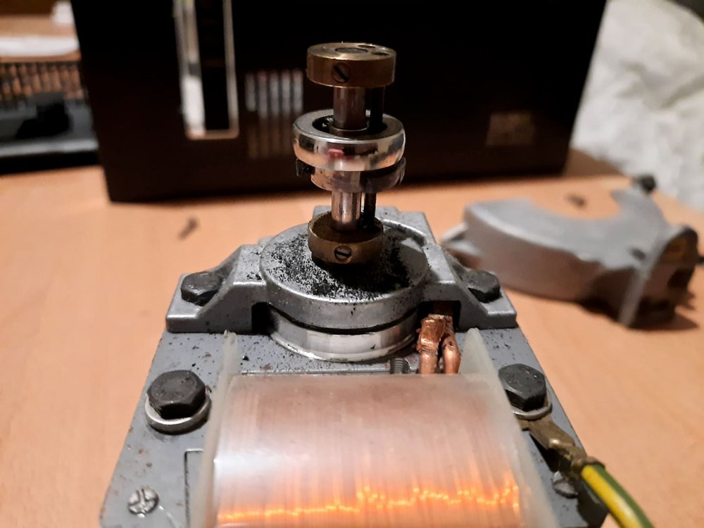 Ich habe gerade 2 Eumig-Projektoren in Reparatur. 😮 Hat das schonmal jemand erlebt? Auf dem Foto fehlt der untere Teil der Antriebsscheibe und die Überreste von der Schaltgabel liegen offenbar zerrieben auf dem Motor Kann es sein, dass die Schaltgabel auch den unteren Teil der Antriebscheibe zerstört hat, welche eigentlich wesentlich härter ist. Ich habe eine neue Schaltgabel eingesetzt, aber in diesem Zustand, lässt sich die Antriebscheibe nicht mehr nach unten schieben, um auf 18 B/s umzuschalten. Erst jetzt fiel mir die defekte Antriebscheibe auf.