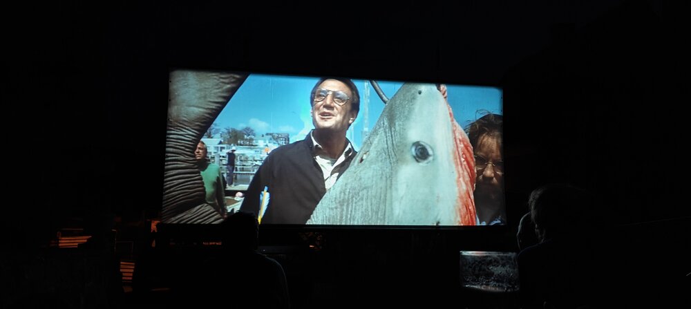 Wenn, dann schon in 70er Jahre Filmkopie auf passendem Projektorsystem der Zeit. War wieder eine schoene Erfahrung eines guten Films im privaten Rahmen unter den Sternen.