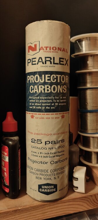 Für dem Schmalfilm gab es Spezielle Kohlen. Unter 30 A Gleichstrom macht die Sache aber wenig Sinn, da waren Glühlampen effizienter.