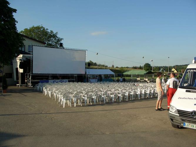 Danke, Kino halt. Ist hinten als Mittelstütze eine Laufschiene drauf, an der ein Center hochgezogen wird, der dann von Oben beschallt. unten kommt noch ein kleiner hin