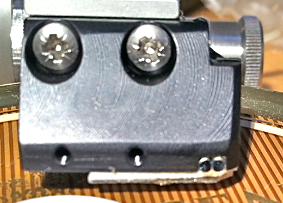Hallo Jens, danke für die schnelle Antwort. Das Problem mit der zu schmalen Abtastung hatten Martin und ich auch schonmal bei mehreren Ernemännern festgestellt. Laut Ernemann liegt es nicht an der Konstruktion der Zelle, sondern an der Einstellung der Tonlampe/Optik die das Licht zu schnell hinter dem Film wieder streut. Gemessen beträgt die Breite der beiden Lichtleitstäbe zusammen 2,7mm-2,8mm - rein theoretisch dürfte die Spur also reinpassen. Das Problem wird nur die extrem fummelige Einstellung sein: Bei leichten verrücken in vertikaler Richtung tastet man nicht mehr mit der Mitte der (runden) Lichtleiterstäbe ab, sondern nur noch mit dem Rand - bringt auch Ton, nur werden bei Vollaussteuerung die Spitzen abgeschnitten (siehe Foto unten für die, die Zelle nicht kennen). Mir fällts nur immer schwer zu glauben, dass Ernemann so etwas in der Form (un)passend für ne eigene Maschine herstellt. :-?