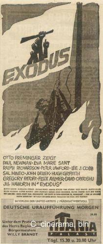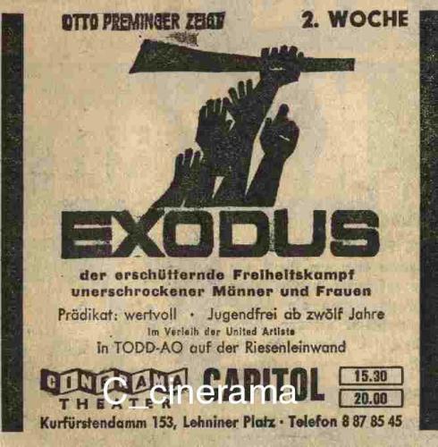 Für die an EXODUS Interessierten ist vielleicht die umfängliche Literaturliste zum Film aufschlussreich, die sich anfand: http://www.cine-holocaust.de/cgi-bin/gdq?dfw00fbw000130.gd Darunter: "Otto Premingers Film Exodus in Jerusalem nicht freigegeben", in: Mannheimer Morgen, 05.08.1961