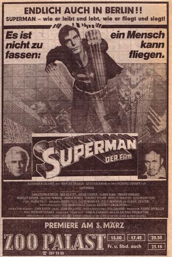 Die Programmkinos (damals "Off-Kinos" und in der gemeinsamen Programmzeitschrift "Filmszene" versammelt) hatte in Berlin einer unser erfahrensten Forums-Mitglieder eingerichtet: FILMKUNST 66, THALIA, BROADWAY und evtl. auch den ersten (?) berliner Einbau im KANT KINO (für Conny Konzack, einem Musikbesessenen - der, was ich nicht wusste, an einer NAPOLÉON-Aufführung in der Waldbühne insolvent ging: http://www.roxikon.de/orte/kant-kino/ ). Noch immer frage ich mich, ob ich im ZOO PALAST im März 1979 SUPERMAN in Dolby A gehört habe. Also noch vor HAIR im Sommer. Dafür gäbe es jedoch zwei Ausschlusskriterien: a) falls ein CP50 war im Februar 1979 noch nicht installiert war und b ) falls SUPERMAN, wie ich vermute, in Dtld. nie in 4-Kanal Magnetton lief. Der Ton erschien mir brillant, aber nicht magnettonbasiert, sodass später die monaurale und im Klang extrem (!) topfige Wiederaufführung, die ich 1 Jahr darauf im benachbarten GLORIA PALAST besuchte, mir die Zornesadern anschwellen liess und mit dem Theaterleiter in ein Gespräch brachte. Der alles auf den Verleih schob (zurecht). Irgendwann scanne ich die Annoncen, und dann weiss man, was Sache war. Die mit Dolby befassten Forumskollegen (evtl. mit Kontakt nach London?) dürften es noch früher herausfinden, hoffe ich.