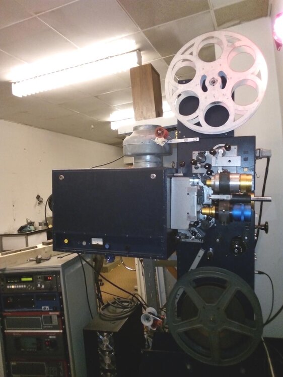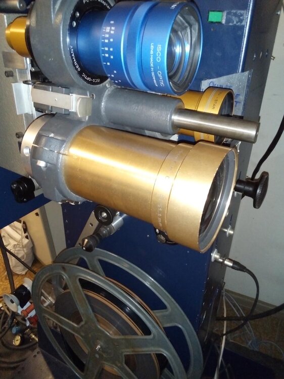 Der Projektor ist kombiniert für 35mm- und 70mm-Filmformate, beide Umrüstsätze sind komplett vorhanden. Mit 10-Spur-Magnetkopf. 35mm Rotlichtabtastung. Bis zu 2200-Meter Spulen-Größe bei 35mm möglich (1 Unterbrechung bei Open Air bei einem 35mm-Film der Länge von ca. 140 Minuten). Veränderungen: - Anbau eines einfachen Hasso-Lampenhauses für Kolben von 4-7 kW (mit Digitalkolben gespielt) durch eine damalige Frankfurter Kinotechnikfirma. Gegen einen Aufpreis von 250 EUR kann auch zusätzlich ein graufarbenes, 7 kW Kinoton-Lampenhaus mitgegeben werden, welches aber an der Kastensäule neu angeschraubt werden müsste) - Demontage eines FP20-Objektivhalters zugunsten eines 3-fach Revolvers des Bauer-U4-Projektors (Einspanngrößen bis 101,6mm) - Zusätzliche Umlenkrolle zur Verringerung des Umschlingungswinkels (im Falle des Einsatzes geschrumpfter Filme) - Am Amphenolstecker des Magnetkopfes angelötetes geschirmtes Mikrofon-Kabel, welches noch an einem Magnettonverstärker angeschlossen werden müßte - Kabel für den Lichtton einsteckfertig für jeden analogen Dolby- und Sony-Cinema Prozessor - Kabel und Zuleitungen für Gleichrichter schnell anschliessbar - 6 unbenutzte Rohfilmmasken für 70mm-Format - 1 im Einsatz gewesene Maske für die 35mm-Formate 1.85: 1 und Scope - einige Ersatzteile wie Delrin-Kufen für die Bildbühne etc. - ohne Objektive und Xenonkolben (gegebenenfalls nachlieferbar), ohne Verstärker, ohne Spulen, ohne Gleichrichter Das Gerät wird als gebraucht verkauft und akzeptiert wie besehen. Es befindet sich auf einer Rollplatte und muß abgeholt werden. Eine Rückgabe ist nicht möglich. https://www.ebay.de/itm/394536039311?mkcid=16&mkevt=1&mkrid=707-127634-2357-0&ssspo=tcfGO0peSGK&sssrc=2349624&ssuid=tcfGO0peSGK&var=&widget_ver=artemis&media=COPY The projector is combined for 35mm and 70mm films, both conversion kits complete. With 10-track magnetic head. 35mm red light optical Sound scanning. Up to 2200-metre reel size possible in 35mm (one interruption in open air for a 35mm film of approx. 140 minutes length). Modifications: - Addition of a simple Hasso lamp house for Xenonkolben n bulbs of 4-7 kW (played with digital cinema xenon bulbs, too). For an additional charge of EUR 250, a grey-coloured, 7 kW Kinoton lamp house can also be supplied, but would have to be screwed onto the box column again - Dismantling of an FP20 lens holder in favour of a triple lens revolver of a Bauer U4 projector (tubus sizes up to 101.6mm) - Additional reels to reduce the wrap angle (in case of using shrunk films) - Shielded microphone cable soldered to the amphenol plug of the magnetic head, which would still have to be connected to a magnetic sound amplifier. - Cables for the light sound ready to plug in for any analogue Dolby and Sony Cinema processor - Cables and leads for rectifier quickly connectable - 6 unused raw film masks for 70mm format - 1 mask in use for 35mm formats 1.85: 1 and Scope - some spare parts like Delrin parte for the gates etc. - without lenses and xenon bulbs (can be delivered later if necessary), without amplifier, without spools, without rectifier The unit is sold as used and accepted as is. It is on a rolling plate and must be collected. No return is possible. https://www.ebay.de/itm/394536039311?mkcid=16&mkevt=1&mkrid=707-127634-2357-0&ssspo=tcfGO0peSGK&sssrc=2349624&ssuid=tcfGO0peSGK&var=&widget_ver=artemis&media=COPY