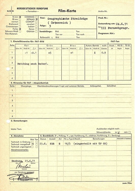 Ein Sendefilm vom NDR 1971, mich würde einmal interessieren ob es sich um Umkehrmaterial handelt. Falls ja, bis wann war es üblich direkt Umkehr zu schneiden und zu senden?