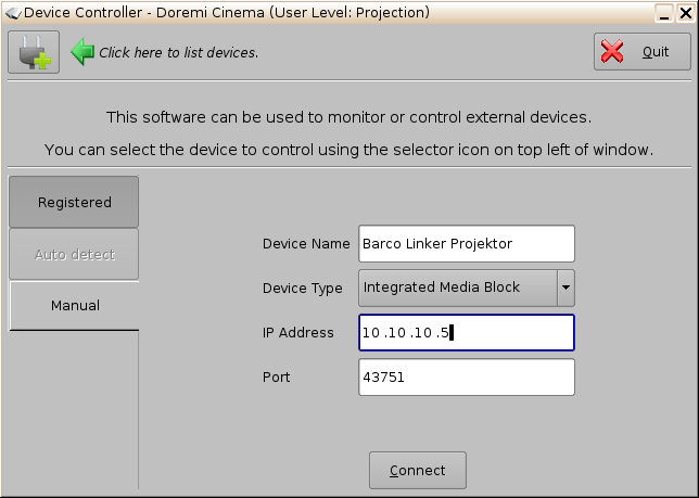 Meine lieblings Netzwerksteckdose mit vier Anschlüssen ist die NETIO 230B. Gibts für 99€ bei Reichelt. Für eine vier Port Steckdosenleiste sehr günstig und funktionier nun auch wunderbar am Doremi. Die ePowerSwitch D4 hat nach meinen Recherchen kein "echtes" CGI Interface. Zumindest kein im Handbuch dokumentiertes. Aber per RAW device (im schlimmsten Fall im Binary Modus) bekommt man auch diese Steckdose angebunden. Mann muss nur an "http://benutzername:passwort@<IP-Adresse>/config/home_f.html" den passenden Wert schicken. z.B. P1=1 (Steckdose 1 an) oder P3=0 (Steckdose 3 aus)