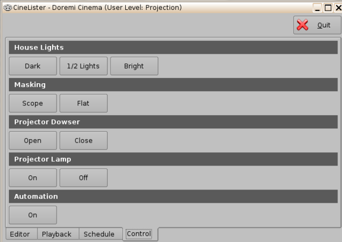 @Monline: Das ist kein Fehler. Da war bestimmt der erste Reboot mit der neuen Software. Er meldet dir nur welche Festplatten verbaut sind. Da das Tool vorher (weil es neu ist) deine Festplatten nicht kannte, kommen drei Info Meldungen. Festplatte in /dev/sda /dev/sdb und /dev/sdc sind vom Hersteller X mit der Seriennummer Y. Macht im Laufenden Betrieb nur dann Sinn wenn du mal nach einem Festplatten Ausfall eine Platte tauschst. FireTrigger ist ein Kontakt den du schalten kannst wenn es zum Feueralarm oder einer Evakuierung kommt. Damit kann man ein spezielles Makro ablaufen lassen. z.B. Licht an, Projektor zeigt ein Bild "bitte verlassen Sie umgehend das Kino" und dann am besten noch alle System abschalten. Dieser FireTrigger war früher nur aktiv wenn eine Show lief. Jetzt wird dieser FireTrigger immer ausgeführt wenn der Doremi eingeschaltet ist. "Skip to ShowPlaylist Pack" habe ich oben erklärt. Du kannst innerhalb einer Show mit einem Makro in eine Andere Show Springen. Bestimmt auch schön in Kombination mit dem FireTrigger.