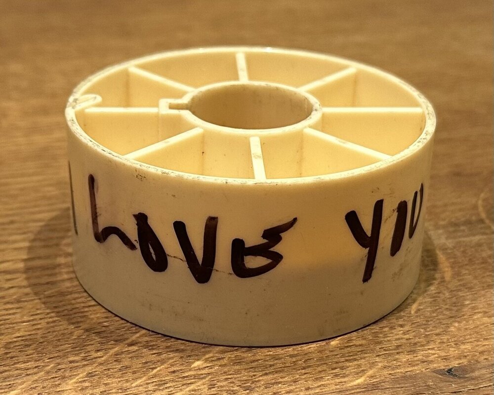 Sehr geehrte Filmvorführer und Filmvorführerrinnen, Ich bitte darum, bei der Beschriftung von Filmkernen äußerste Vorsicht walten zu lassen. Der unten angefügte Filmkern lag unwissentlich auf meinem Prüftisch. Habt ihr eine Vorstellung, welchen Stress ich jetzt mit meiner Freundin habe? 🤦♂️ Hochachtungsvoll, filmfool