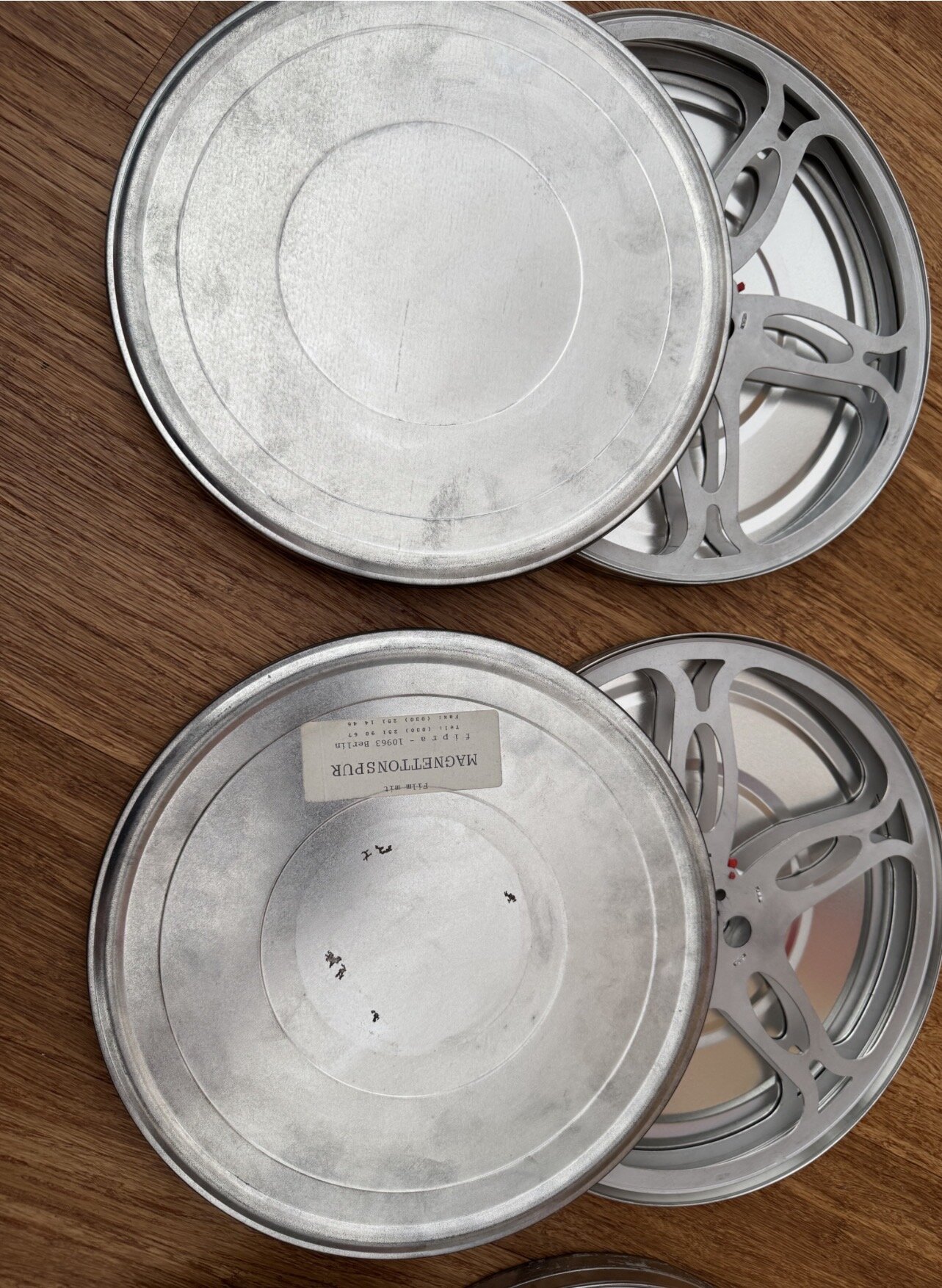 Verkaufe 4 Dosen und Spulen für 16mm Film. 3 Dosen und Spulen sind aus Alu jeweils f. 300m 1 Dose (die dunklere auf dem Foto) aus Alu und die 300m Spule aus Plastik. Zustand siehe Fotos Preis incl. Versandkosten in Deutschland für slle 4 zusammen,.. 95.- Euro (EU Versand 15.- Euro extra) Verkauf von Privat an Privat ohne Garantie, ohne Gewährleistung, ohne Sachmängelhaftung und ohne Rückgaberecht.