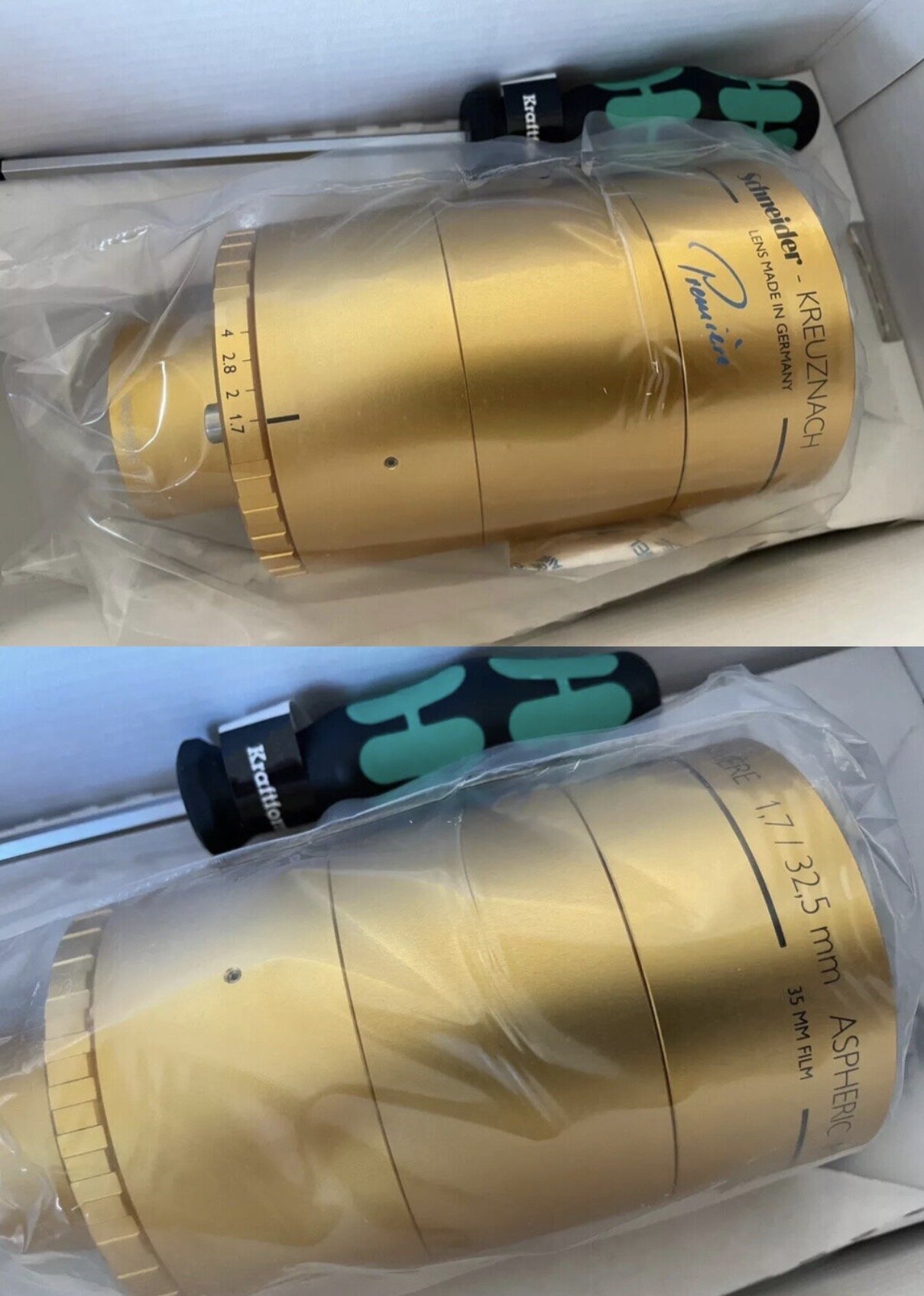 Verkaufe folgende Schneider Objektive: in den Originalverpackungen, wie NEU, nur 1x ausgepackt in Folie. Cinelux 2.0/ 32,5mm - 150.- Euro Cinelux Premiere 1.7/32.5mm - 550.- Euro Preis incl. Versandkosten in Deutschland (EU Versand 15.- Euro extra) Verkauf von Privat an Privat ohne Garantie, ohne Gewährleistung, ohne Sachmängelhaftung und ohne Rückgaberecht.