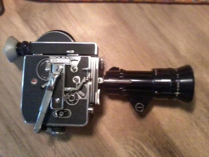 Hallo in die Runde -die Vorfreude hat sich gelohnt: es kam eine Bolex REX-2 als Modell RX-Matic -Gehäusenummer 200504 (wohl 1963); Objektiv: SOM-Berthiot Pan-Cinor 85 -1:2/17-85 mm. Preisliste war dabei: Korpus DM 1.830.- Objektiv mit Schnittbildentfernungsmesser: DM 1.675. Alles in Top-Zustand -lediglich am Filmfachdeckel musste etwas gefummelt werden -die drei Schieber waren etwas dejustiert. Ich bin happy -es brauchte ein wenig Zeit, um die Funktionsweise der mit dem Federwerk gekoppelten Sektorenblende (RX-Fader) zu verstehen . Da ich noch einen Belichtungsmesser (allerdings ohne Batterie) übrig hatte, wurde jener natürlich auch sofort aufgesetzt. Etwas Probleme gab es mit dem zusätzlichen Sucher zum Zoom ( 2. Foto): es brauchte einige Zeit, bis das Sucherbild waagrecht ausgerichtet war (sehr schön hell mit dem Schnittbildentfernungsmesser im Vergleich zu dem doch sehr dunklen Reflexsucher der Kamera.) Da ist leider im Objektiv ein kleiner nicht verdrehbarer Pin, der den einsteckbaren Sucher fixiert -um das Sucherbild in jenem sehr schön hellen "Zusatzsucher" dann waagrecht zu bekommen bedarf es einiger Versuche .... Drehbewegungen am schweren Zoom. Aber es hat geklappt und .. ein Sammler freut sich riesig. Viel Spaß beim Hobby wünscht Ernst.