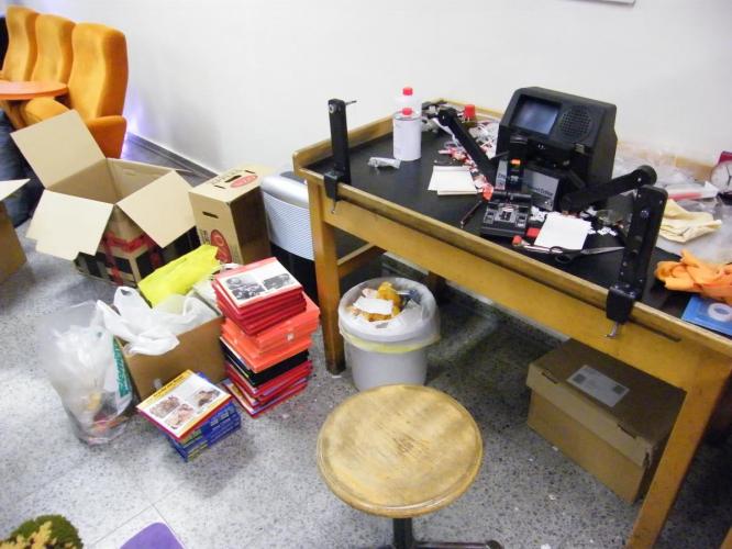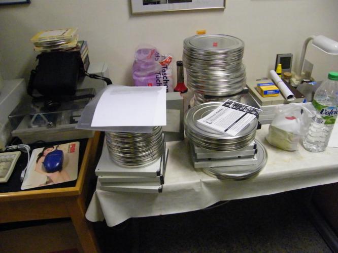 Hallo Krämer73: Danke für den Tipp. Ich versuche es mal. Und falls es funktioniert: Bitte nicht erschrecken! Das Chaos da, ist noch "Normalzustand". In der Regel sieht es nämlich schlimmer aus. Die Leinwand kann man auf den Bildern zwar nicht sehen (habe die Bilder schon vor etwa 1 1/2 Jahren gemacht) aber sie ist vier Meter breit und hängt in einem Kasten an der Decke. Wenn ich vorführe lasse ich sie elektrisch herunterfahren (und vorher wird wenigstens noch grob aufgeräumt). Der gesamte Raum hat eine Größe von 45 Quadratmetern. Leider werde ich ihn über kurz oder lang aufgeben müssen, da es zunehmend Probleme mit eindringendem Wasser gibt. Die Wand mit dem "Sternenhimmel" ist vollkommen durchgeweicht vom Regenwasser. Wenn sie nicht bald saniert wird, kommt sie runter. Das Haus gehörte mal meinem Arbeitgeber. Mittlerweile aber nicht mehr. Irgendeine canadische Holding hat es (sowie jedes andere Gebäude auch, mit einigen wenigen Ausanhemen) gekauft. Meine Firma ist jetzt nur noch Mieter. Bald werden wir (damit meine ich meine Kollegen und mich) dort ausziehen. Wo wir dann unseren Job machen werden, weiß zwar kein Mensch, aber das war unseren Chefs ja eh schon immer egal, wie wir unsere Arbeit unter welchen Umständen auch immer erledigen. Wenn ich da rausgehe, habe ich ein Riesenproblem. Wie soll ich den ganzen Kram in meiner ebenso großen Wohnung unterbringen? Eine größere Wohnung kann ich mir nicht leisten, es sei denn, es wäre die allerletzte Bruchbude im ganzen Ort. Ich betreibe jetzt seit 28 Jahren das Hobby Schmalfilm. In der Zeit hat sich so einiges angesammelt. Von einigen Sachen werde ich mich zwar auch wieder trennen, aber ganz gewiss nicht von allem hier. Dafür habe ich einfach zu viel Zeit, Geld und Geduld investiert. Trotzdem viel Spass mit den Bildern. LG von Bauer-Fan