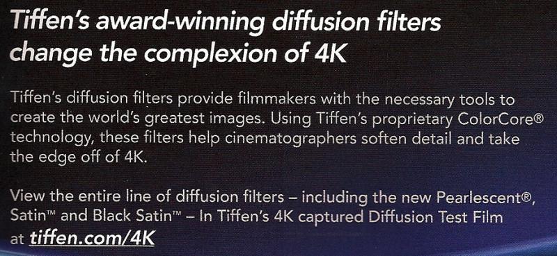 Zum Thema The sense and nonsense of 4K and beyond eine kurze Notiz aus der realen Welt von uns DoPs. Tiffen, der Welt traditonsreichster und beliebtester Camerafiltermanufacturer hat eine Marktlücke entdeckt! Man könnte sagen, ein tool, um trotz 4k anständige Bider zu machen. Es ist das alte Problem, bei Video gescheite Hauttöne (engl. Fachterminus „Complexion“), jetzt noch potenziert durch 4k und die damit verbundene, dramaturgisch unsinnige, mikroskopische Exkusionen in Hauttopographien. Also liebe Pixelafficionados, Tiffen hat’s kapiert, jetzt grämt Euch nicht 1 Ausschnittvergrößerung :