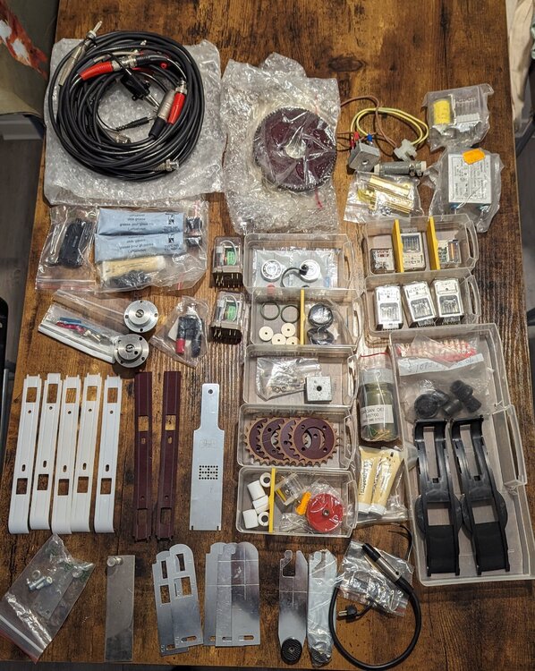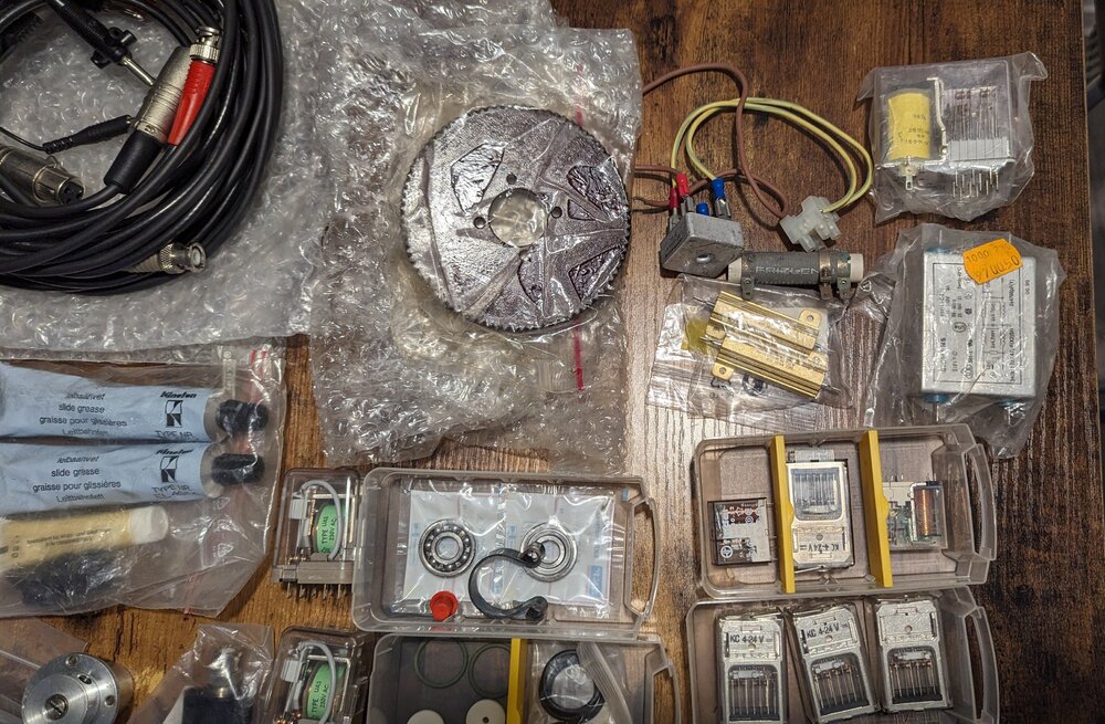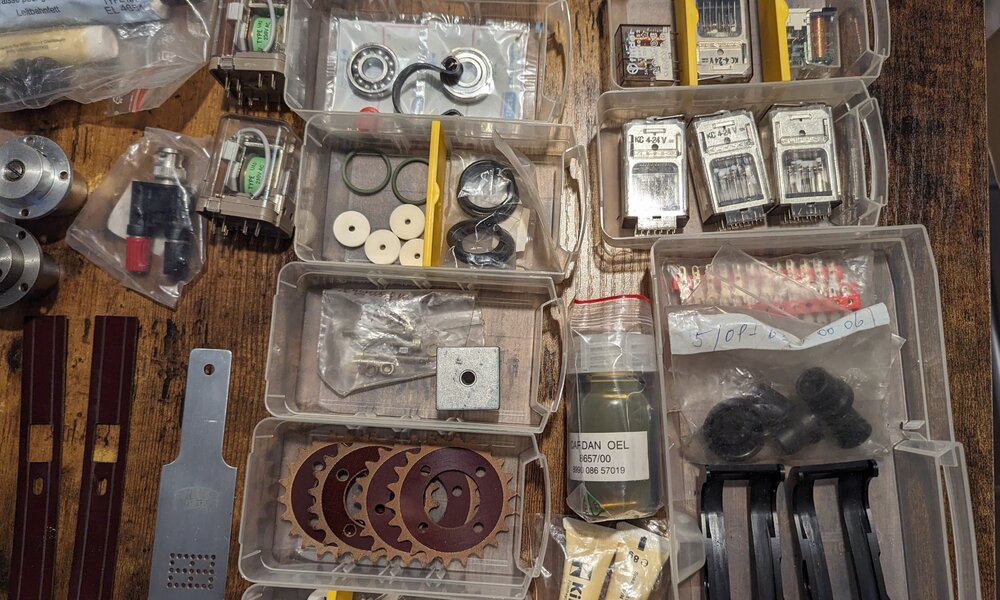 Biete ein großes Ersatzteilkonvolut für Kinoton-Projektoren an. Die Bilder geben Euch einen guten Gesamtüberblick, was alles an Ersatzteilen dabei ist. - Kufen, Andruckkufen - diverse Masken - Funkenstrecke - Kleine + Große Ritzel - Öl, Schmierfette - Gummies für Tonandruckrolle fürs Reverse Scan - Sicherungen - u.v.m. Bei Interesse bitte PN mit Preisvorschlag. Versand natürlich möglich.