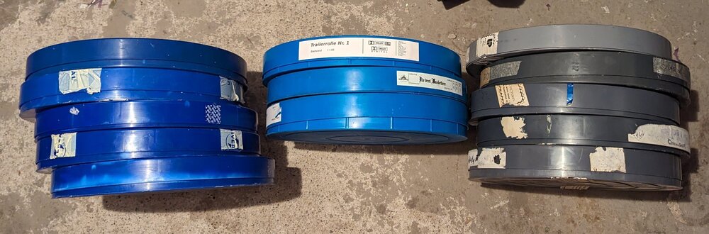 Hey zusammen, Ich habe einige Filmdosen abzugeben in 3 verschiedenen Farbtönen. Dunkelblau (Universal), hellblau und grau. Natürlich müssten bei einigen die Aufkleber mal abgemacht werden und die Dosen gewaschen werden. Als kleinen Sonderbonus gibt es bei fast jeder Dose eine Überraschungstrailerrolle (5-25 min) mit dabei....diese befinden sich noch in den Dosen, teilweise Scope Rollen und SDDS Rollen! Ein schönes Überraschungspaket 🙂 Bei Interesse bitte PN mit Preisvorstellung. Einzelabnahme oder ein Paket von mehreren möglich...oder eben alle auf einmal 😉 Versand ist möglich!