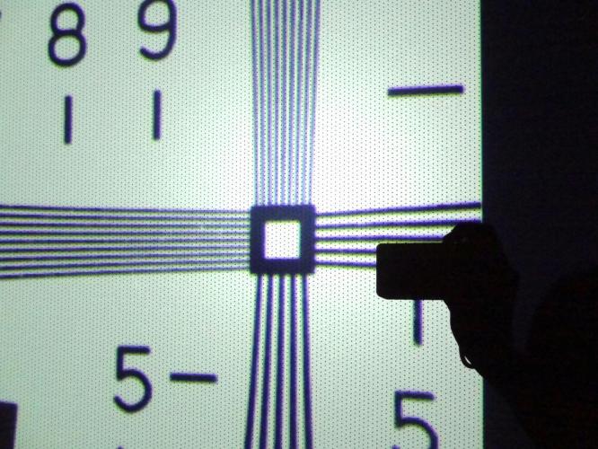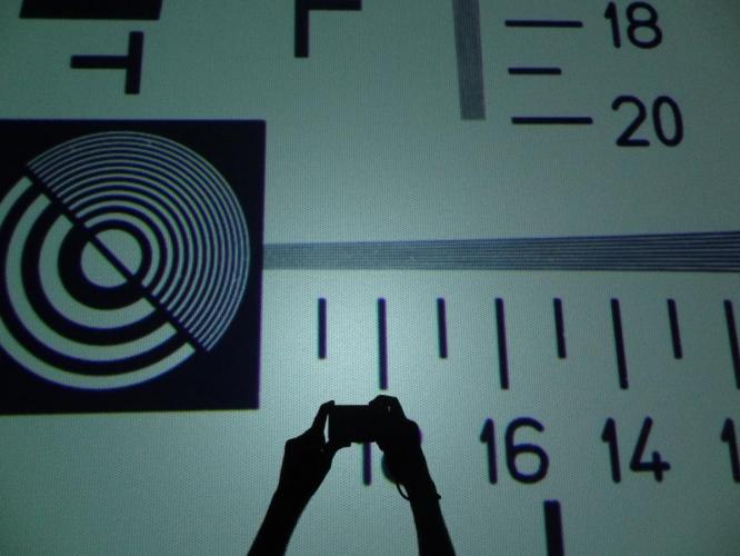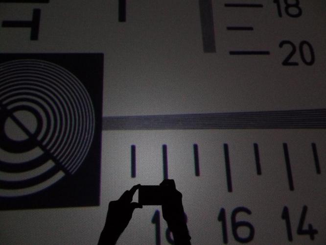 Nur um die Behauptung 'Schärfeverlust durch billige Filterfolien' mal praktisch zu konterkarieren: Zwei Bilder - bei dem einen hing ein billiger und verstaubter/verkratzter Lichtblaufilter gewölbt (vom Rollen) vor unserem Sony 4k Projektor - einfach oben mit Kreppband auf der Optik fixiert und runter hängen lassen. Das Bild zeigt einen ca. 50cm Ausschnitt aus einem 12m breit projizierten Bild. Wer will, kann zum Beleg die Perforationslöcher der Leinwand zählen. Das Bild mit Blaufilter wurde mit manuellem Weissabgleich auf die Bildwand gemacht, um den Effekt der Adaption des Auges bei der Verwendung solcher Filter nachzuahmen. Und ja, die Bildschärfe ist auf der gesamten Leinwand gleich. Ja, die Projektionsoptik ist ein etwas anderes Kaliber als eine für Super8 oder 16mm. Nein, das ist kein Plädoyer dafür, nur noch billige Lichtfilterfolien vor Kameras zu kleben. Aber wir sind hier bei der Projektion am Ende der Präsentationskette. Wer so einen Folienfilter in einen Rahmen spannt und diesen gewinkelt vor die Optik montiert, kann auch noch zusätzlich Kontrastverlust durch Rückreflektion in die Optik vermeiden. - Carsten