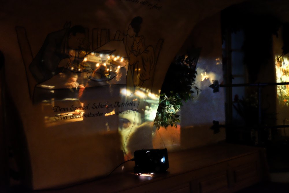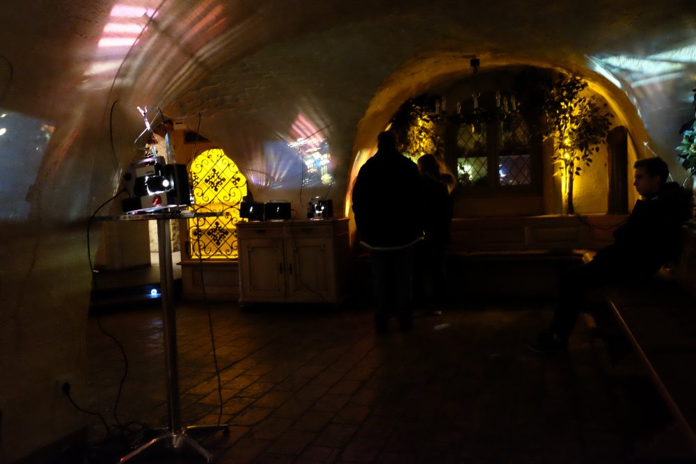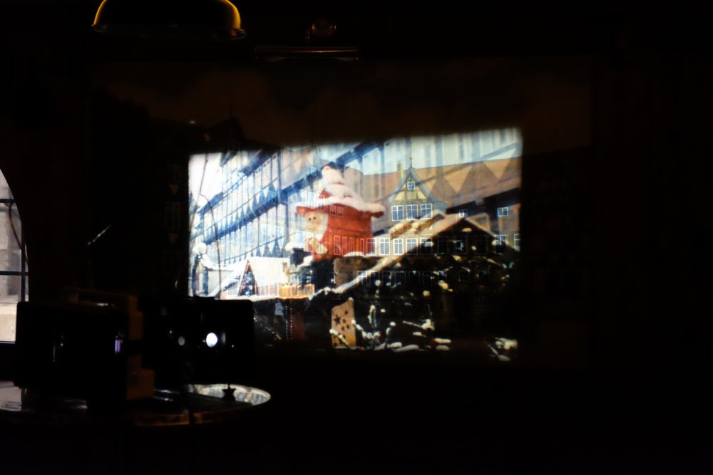 Über 5.300 Besucher haben das Wolfenbütteler Weihnachtsflimmern an den vergangenen Adventswochenenden bereits gesehen. Bisher liefen Filmszenen, die die Wolfenbütteler eingereicht hatten: Weihnachts-, Silvester- und Schneeszenen aus der Region, gedreht 1955-1990, von uns ausgewählt und zu Endlosschleifen auf Drahtkonstruktionen montiert. Jetzt gibt es einen Grund, das Spektakel im Ratskeller der Stadt noch mal anzuschauen: Wir filmten am ersten Adventssonntag mit drei Super-8-Kameras den aktuellen Weihnachtsmarkt und ihre Besucher. Die neuen Szenen werden am Freitag und Samstag von 14 bis 21 Uhr gezeigt. Wir sind total überwältigt vom großen Zuspruch für unsere Installation. Viele Wolfenbütteler wollten die Filmstreifen mit Weihnachts- und Silvesterfeiern aus den 1970er Jahren unbedingt sehen. Einige kamen sogar an jedem Tag vorbei, um nach ausgewechselten Szenen zu suchen. Die 50 Eumig-Projektoren und die extra gefertigten Drahtkonstruktionen für die Endlosschleifen der Filme haben gut durchgehalten. Die Vorführung der von Wolfenbüttelern eingereichten alten Filme ist nun abgeschlossen. Am kommenden Donnerstag führt das stadtflimmern-Team von 14 bis 18 Uhr Trickfilme für Kinder vor. Und am 22. sowie 23. Dezember kommt es schließlich zum Höhepunkt des Projekts: Wir zeigen neu auf Super 8 gedrehte Filme, die am ersten Advent entstanden sind. Auf hochempfindlichem Negativfilm drehten wir während des Schneefalls und am Abend auf dem Weihnachtsmarkt. Das Filmmaterial ging dann für die Entwicklung zu Andec Dies ist weltweit der einzige Ort, an dem man von Super-8-Negativfilmen Positivkopien im Wetgate-Verfahren anfertigen lassen kann. Vergangenen Montag wurden die Ergebnisse abgeholt und begutachtet: Alles ist gut belichtet, das auf Kodak Vision3 200T und 500T gedrehte Material sieht in der Positivkopie toll aus. Mit den von der Leinwand per Handy abfotografierten Bildern während des Filmlaufs lässt sich das nur schwer wiedergeben, aber ich versuche es mal. Wir sind gespannt, wie die Wolfenbütteler diesen Abschluss des Projekts aufnehmen.
