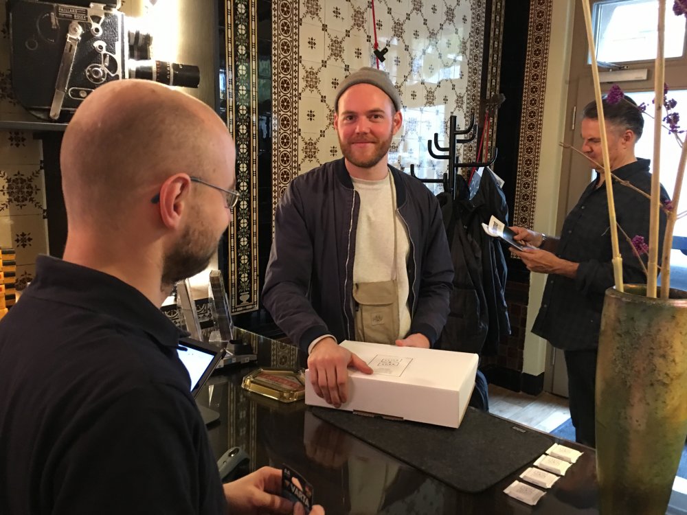 Punkt 11, wir öffnen. Der Kodak Super 8 Prototyp stößt auf reges Interesse und die ersten Kameras gehen über den Ladentisch - in der typischen weißen click & surr Schachtel.
