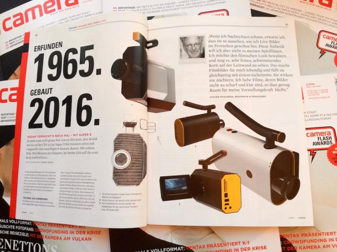 In der neuen camera 2/16, die in einer Woche im Zeitschriftenhandel zu haben ist, befinden sich ausführliche Berichte über die neue Kodak Super-8-Kamera und über Crowdfunding-Projekte wie Ferrania. In einem vierseitigen Beitrag über Kodaks neue Kamera gibt es auch zwei Interviews: eines mit dem Designer der Kamera, Yves Behar und eines mit Christian Richter, Director Sales & Marketing, Kodak. Ich will hier nicht zuviel verraten, weil wir ja vom Verkauf unserer Magazine leben. Aber soviel sei gesagt: Es soll keinen neuen Super-8-Farbumkehrfilm geben. Die von Jeff Clarke, CEO Kodak, geweckten Hoffnungen kamen ja aus Interviews, in denen er sagte, die von Kodak nach der Entwicklung zurückgesandten Filme könnten auch projiziert werden. Da dies mit den momentan am Markt befindlichen Negativfilmen nicht möglich ist, lag es nahe, dass die Wiedereinführung von Farbnegativfilmen geplant sei. Nun stellt sich aber im Interview heraus, dass Kodak dieses Thema technisch ganz anders lösen will. In einem Beitrag über Crowdfunding-Projekte, die ihre Ziele (noch) nicht erreichen und deshalb den Unmut der Geldgeber hervorrufen, geht es auch um Ferrania. Hier ist zu vermelden, dass zwei der sieben Leute aus dem Kernteam inzwischen ausgeschieden sind und die eigentliche Arbeit mit der Rezeptur des Films noch immer nicht begonnen hat. Experten sagen voraus, dass von ersten Ansatz- und Gussversuchen bis zur Produktion eines Farbumkehrfilms mindestens ein Jahr vergeht. Die neue Ausgabe von camera ist per Post bereits erhältlich, auch im Miniabo, für die, die camera mal kennenlernen wollen: www.camera-magazin.de
