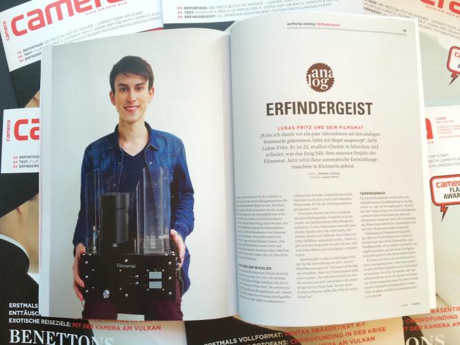 Und noch etwas: Hier im Forum wird ja immer gern gejammert und gemutmasst. Wir in der Redaktion von camera haben uns mal aufgemacht und tagelang wirkliche Fakten recherchiert und mit Leuten gesprochen, "die es wissen müssen". Und das in einem Magazin, das sich eigentlich nur um Fotografie kümmert. Übrigens ist auch ein Artikel über einen anderen altbekannten Freund der Schmalfilmszene in camera 2/16 drin: Lukas Fritz, der jetzt einen vollautomatischen Entwicklungsautomaten gebaut hat. Sie sehen, wir beschäftigen uns weiter mit analogen Themen, obwohl die ja auch als tot gelten. -