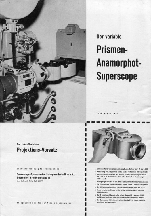 Dann werfe ich auch mal was dazu. So wurde Ende 1955 die variable Tushinsky-Linse aka 'Superscope' in diversen Publikationen beworben: