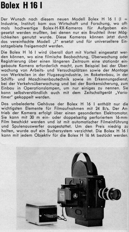 Wo wir schon bei Bolex sind: Da ist diese Abbildung der Bolex H16I vielleicht etwas interessanter. Ebenfalls aus dem Jahr 1969.