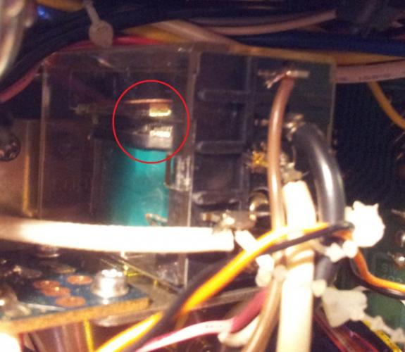 Ja, die untere Sicherung ist die Richtige. Wenn sie in Ordnung ist wäre die nächste Frage, ob das Relais bei Betätigung des Lampenschalters anzieht. Man kann das bei geöffnetem Gerät deutlich hören und auch sehen, wenn man von links in das Relaisgehäuse schaut (erstes Bild). Du kannst außerdem noch mit einem Multimeter nachmessen, ob das Relais angesteuert wird. Zwischen den im zweiten Bild markierten Kontakten sollten im Modus "Lampe an" etwa 10V Gleichspannung anliegen.