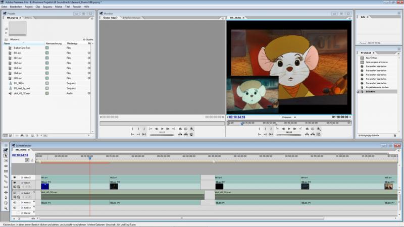Ich verwende Adobe Premiere pro 1.5 bzw. 2.0. Aus heutiger Sicht alt und nicht HD-tauglich, daher fast umsonst zu bekommen. Läuft aber einwandfrei unter Win7 und kann die Surround-Ausgänge der meisten Soundkarten bedienen. Damit lassen sich dann zwei Tonfassungen in Stereo (z.B. Deutsch/Englisch) und ggf. eine Synchronspur für den Projektor mitführen. Der Schnitt erfolgt rein visuell, d.h. man achtet nur darauf, dass die Bilder der S8-Kopie und der DVD-Fassung nicht auseinanderlaufen. Das geht sehr komfortabel und schnell und spart gerade bei Schnittfassungen viel Zeit. Auf dem Bild sieht man die S8-Version im Videofenster unten links eingeblendet: Grüße Jörg -
