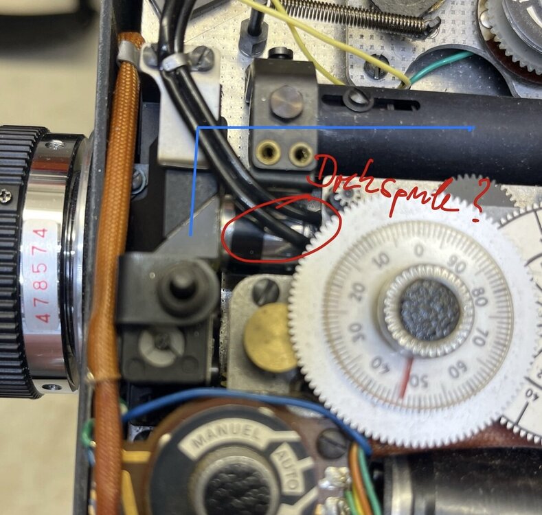 Vielen Dank für den Hinweis. Ich habe es gefunden und so einigermaßen hinbekommen. Zumindest ist der Zeiger wieder frei, leider ein wenig krumm. So kann ich aber filmen. Die gute Nachricht ist: Ich habe beim Touratech Travel Event eine Rolle Kodak E100 verdreht. Schau‘n wir mal, was die Bauer daraus gemacht hat. Liebe Grüße, Uwe -