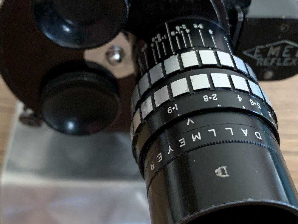 Dank Eurer Hilfe weiß ich nun,dass es sich um eine Emel Reflex mit einem Dallmeyer 38mm Objektiv handelt (ich dachte, die machen nur Kaffee). Meine Kamera spricht allerdings Englisch, die Angaben auf dem Objektiv sind ausschließlich in Zoll, auch die Brennweite. Wenn es keine (bezahlbare) Rettung für den Sucher gibt, dann wird es allerdings ein Vitrinenstück (Staubfänger). Anbei ein paar Fotos für die Genießer. Grüße in die Runde Uwe