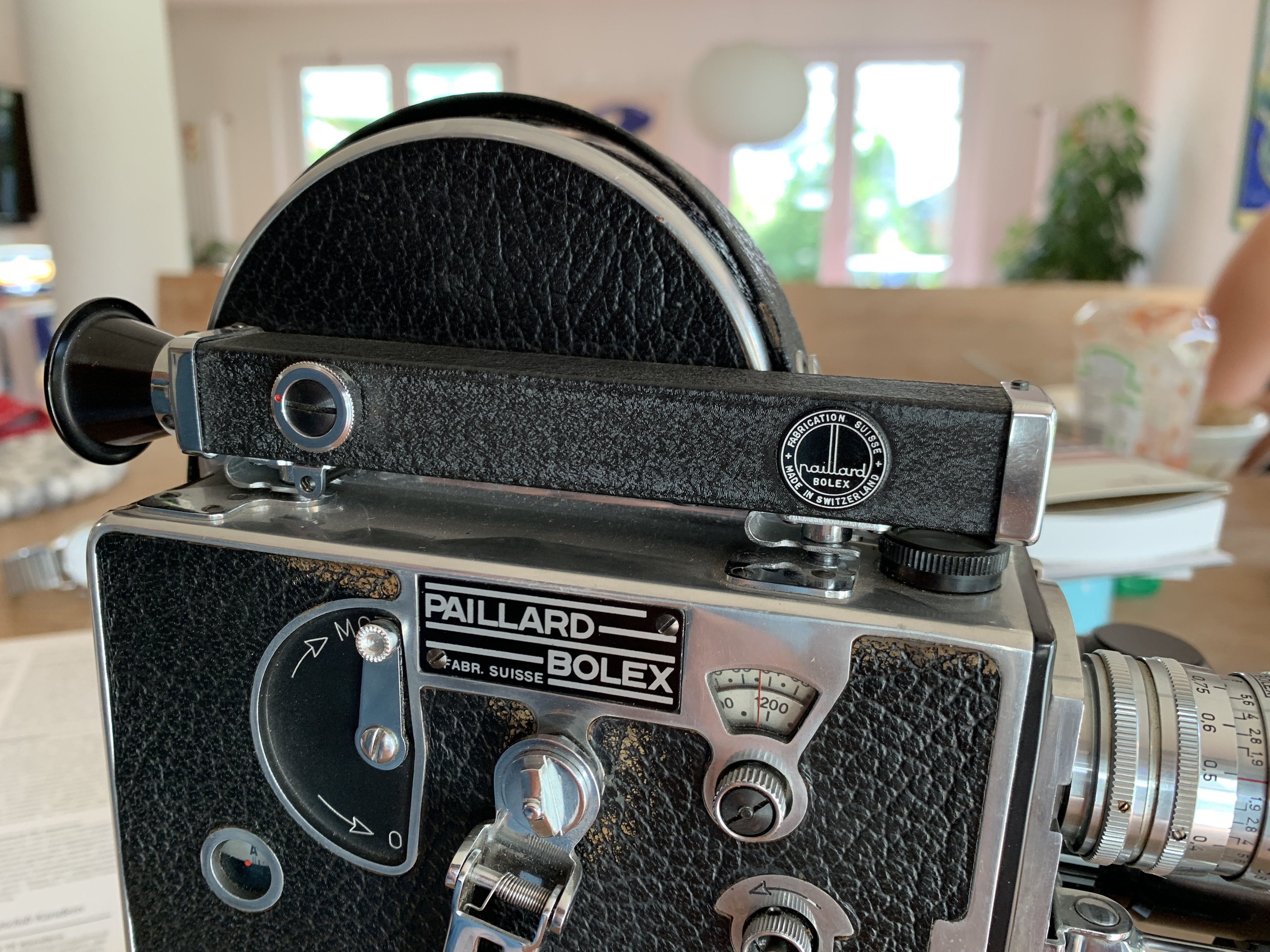 Ist das da obendrauf nicht ein Reflexsucher? Weshalb schaut der nicht durch das Filmobjektiv? Wofür ist der Schalter I-T? Fragen über Fragen.