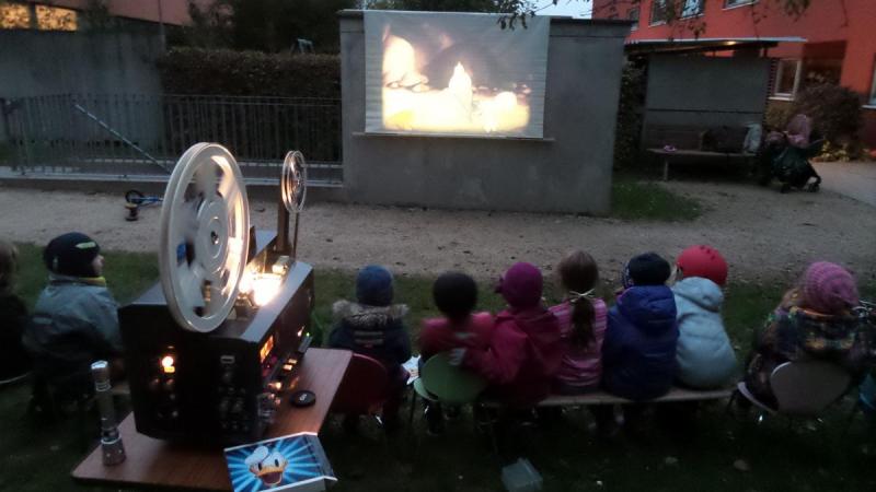 Alle Jahre wieder, als Kindergeburtstags-Abschluss Der Elmo mit seiner 250W-Lampe (von 200 auf 250W gepimpt) war auch bei erst einbrechender Dämmerung ausreichend hell.