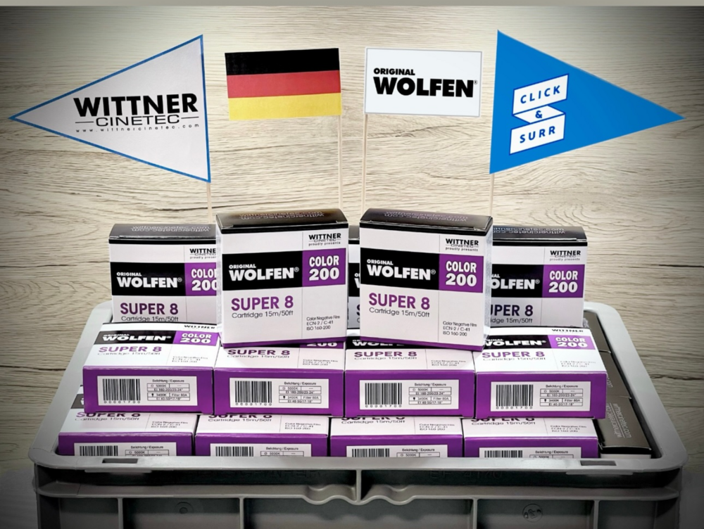 Diesen Farbnegativ-Film in Super8-Kassette bieten jetzt sowohl Click&Surr als auch Wittner an. Im Wittner-Shop wird dieses Material auch in Doppel-8-Konfektionierung angeboten - auf 7,5m-Spulen Wittner Testfilm mit Super8: