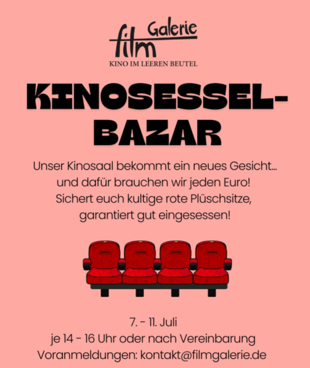 Sucht jemand für sein Heimkino originales Kino-Gestühl? https://www.filmgalerie.de/ Ich muss allerdings dazusagen, die Dinger sind schon recht durchgesessen (darum wird ja auch saniert). Dafür hat das Gestühl in den letzten 35 Jahren fast alle Filmklassiker, Kultfilme und so manch experimentelles Kino miterlebt....