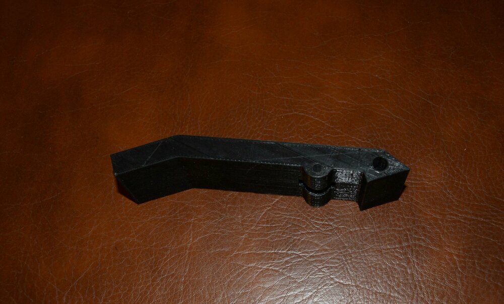 So liebe Gemeinde, ich möchte darüber berichten, wie ich eine 35mm Trockenklebepresse erfolgreich wieder in Dienst gestellt habe. Das Problem, welches viele sicher kennen sind die Druckgusshebel der Klebepressen. Hinten an der Lagerung kommt es meist unweigerlich mit der Zeit zu Rissen, da die Wandung nicht stark genug ist. Der neue Hebel wurde mit dem 3D Drucker gedruckt. Da der alte Stab nicht mehr der Klebepresse beilag musste eine neue her. Ebenso eine neue Walze für den Druck auf das Schneidwerkzeug und einen passenden Stift für diese. Gesagt getan, schnell die kleine Chinadrehe angeworfen. Die Hebelteile zusammengefügt > Und alles zusammengebaut