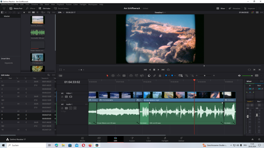 Am Schiffswrack, Korsika Super-8 Film Kodachrome 40 Nikon R-10 und Eumig Nautica als Kameras Selbst digitalisiert Die Unterwasseraufnahmen hat Gitzmo (Kollege hier im Forum) in DaVinci nachbearbeitet