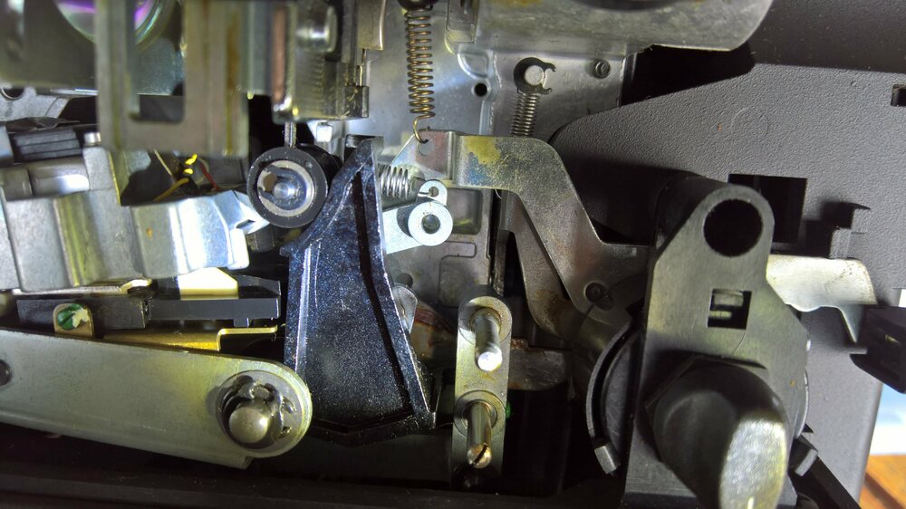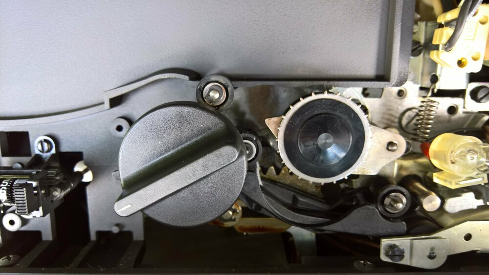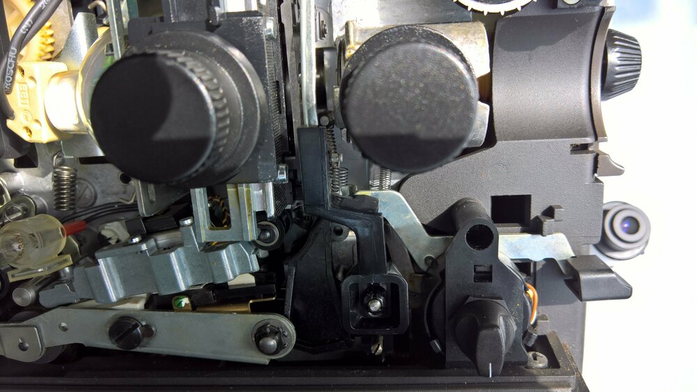 Ich stelle demnächst 3 Fotos hier ein : Die richtige Stellung der Hebel für das Einfädeln bei der ersten Stufe des Hauptschalters ( Einfädeln ) Bei der zweiten Stufe ( Projektion ) Und dem weißen Hebel, der leichtgängig sein soll